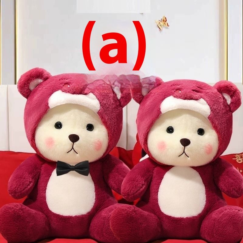 A pair of new wedding gifts for wedding dolls on the pressure bed, giving newlyweds a pillow, a doll, a high-end and cute bed in the wedding room