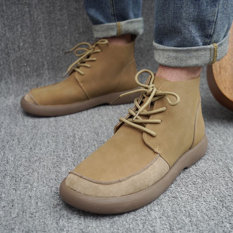 Euro Step British Style Martin Boots Men's New Winter Flat Casual Shoes Non-Slip Pointed Toe Cowhide Loafers