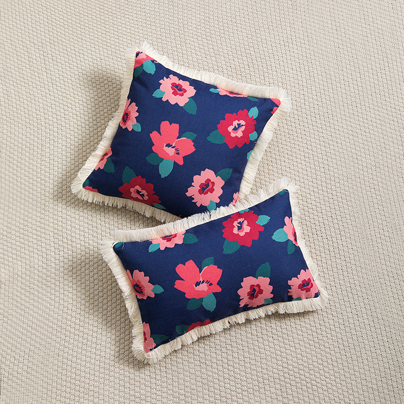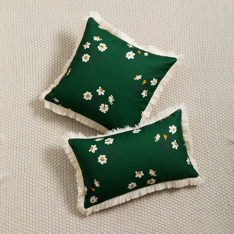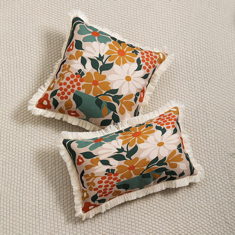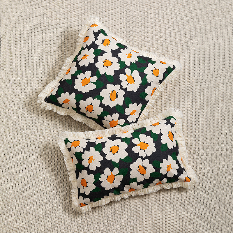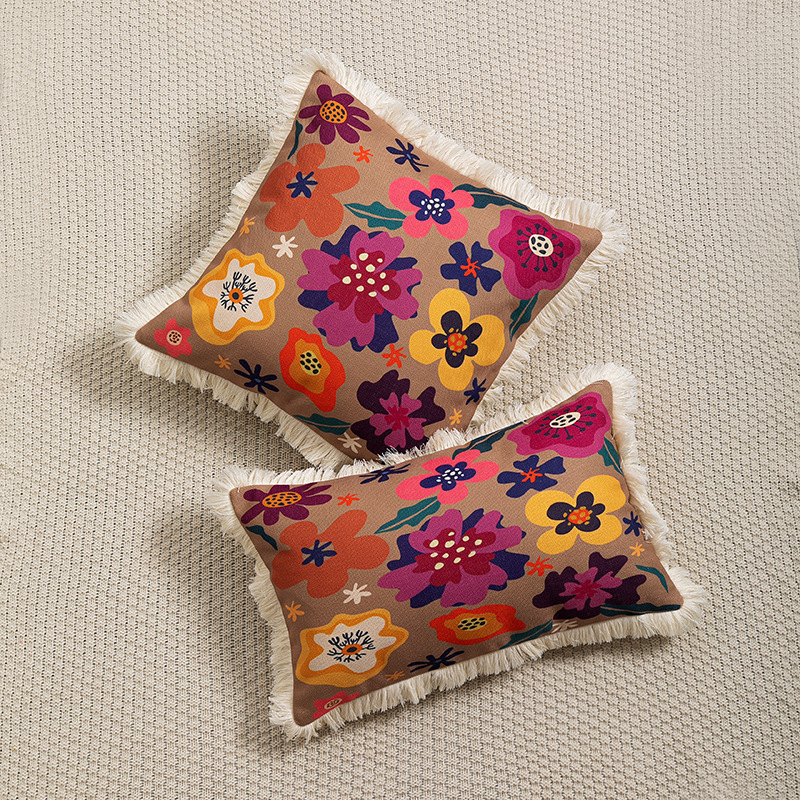 Europeisk och amerikansk stil runt tofskant dekorativ växtblomma bomullslinne tryckt örngott heminredning soffa kuddfodral