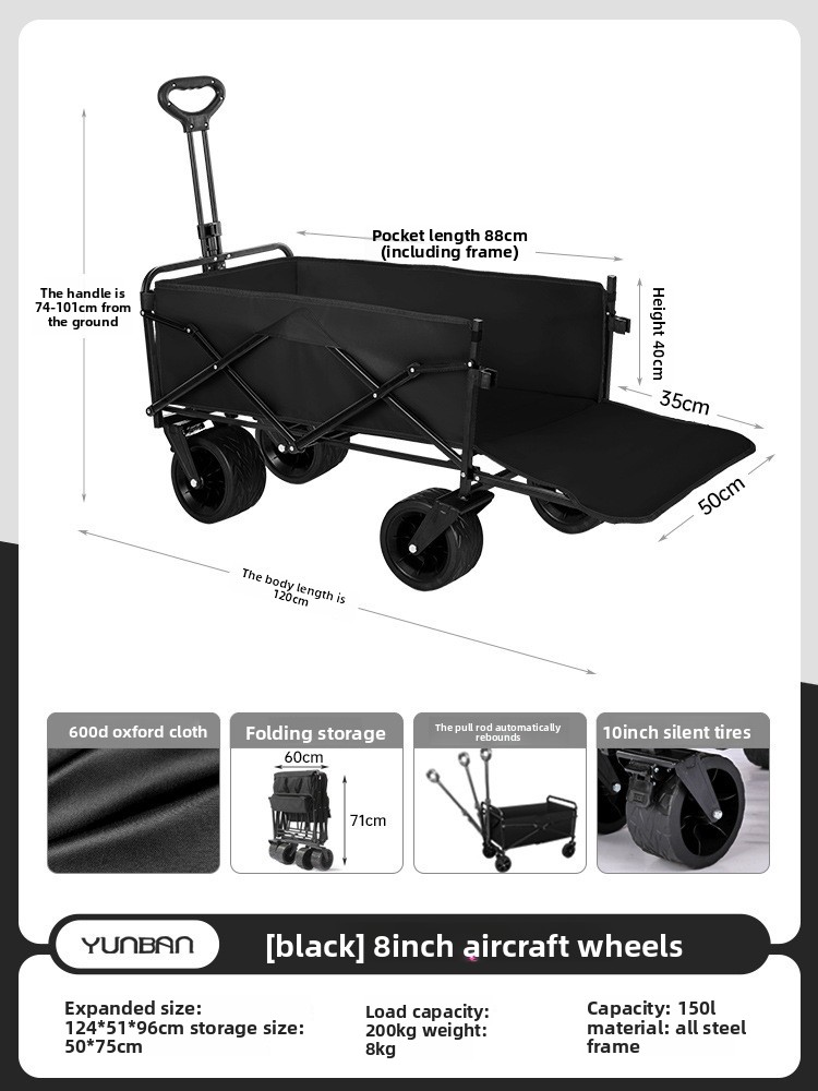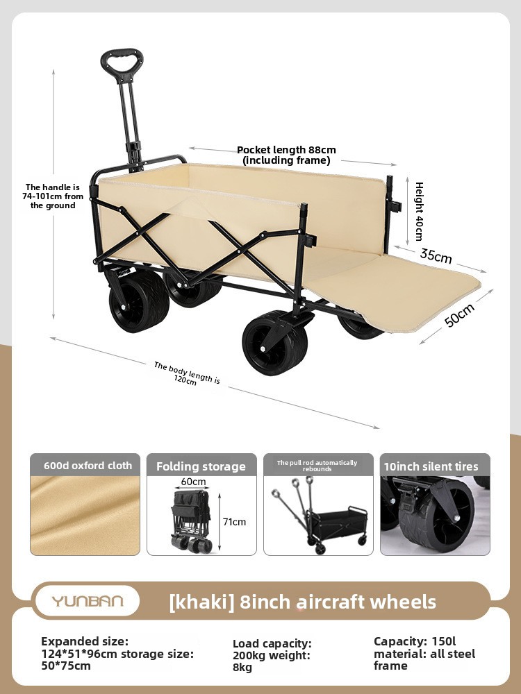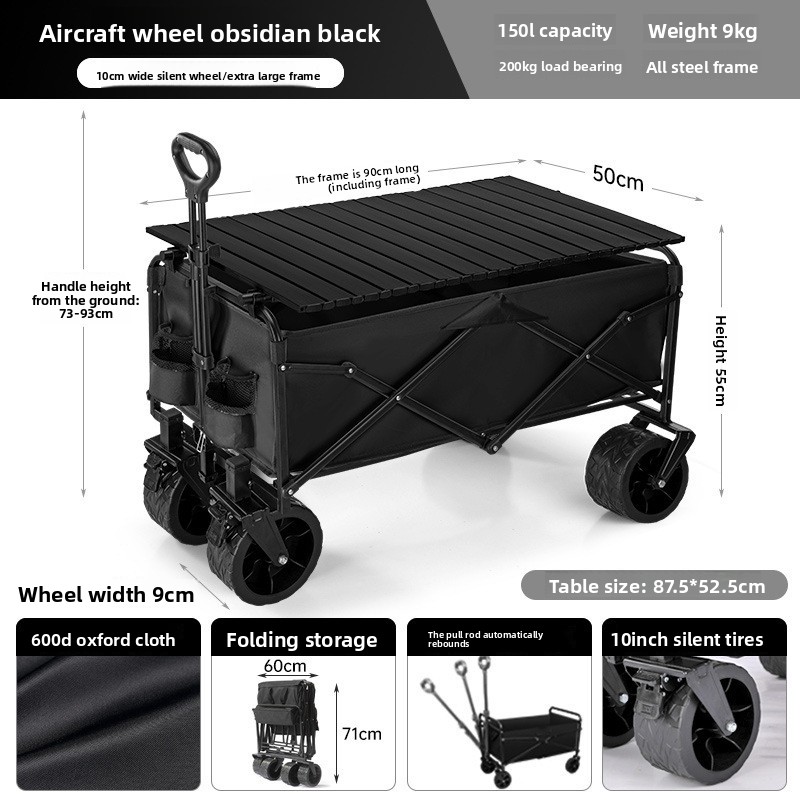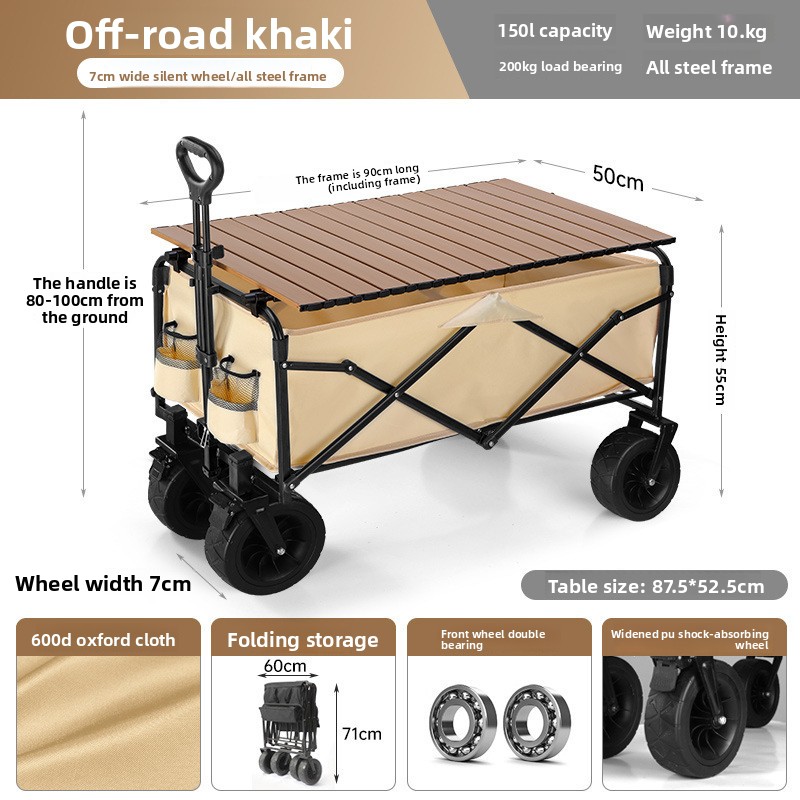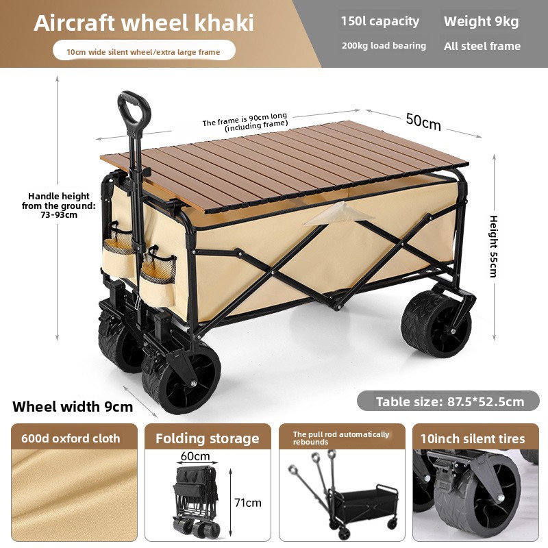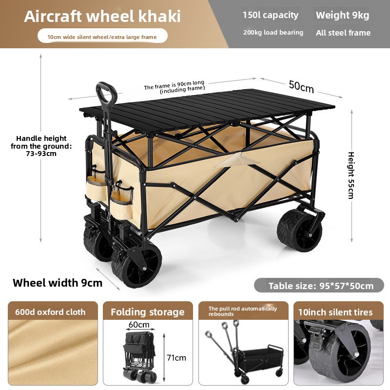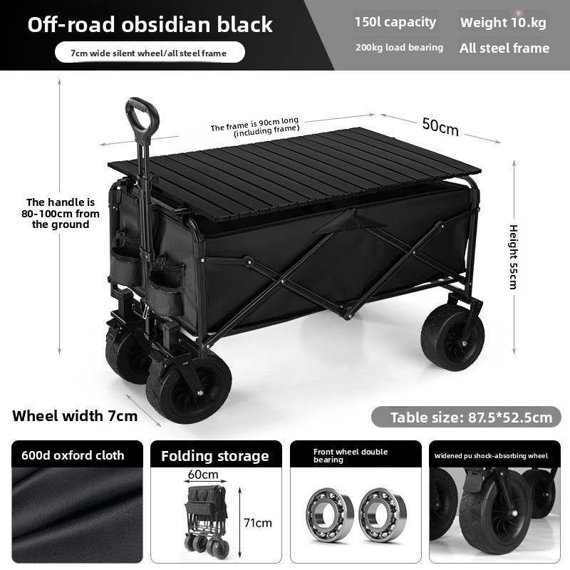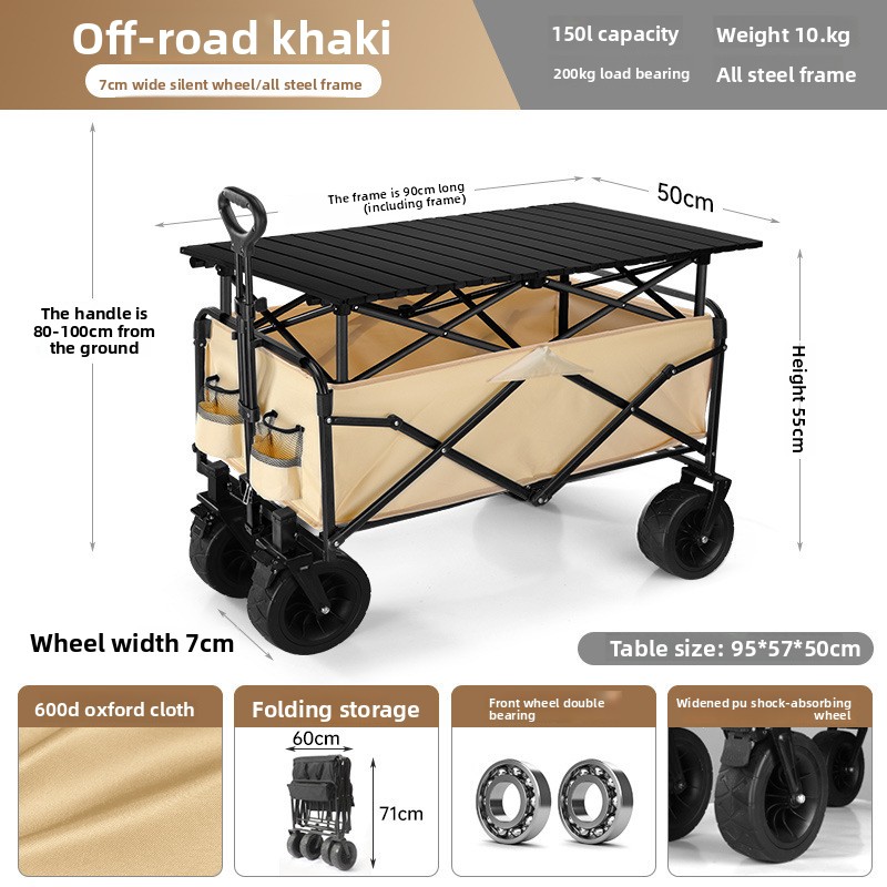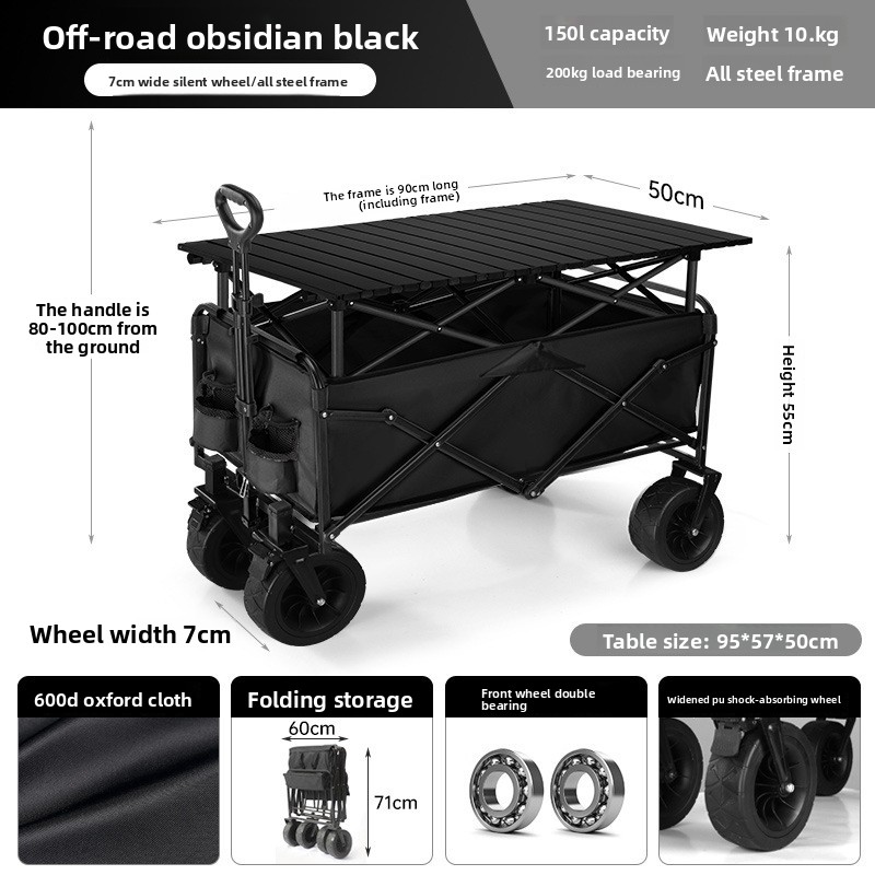 Outdoor folding camping cart, portable stall cart, large picnic trailer with table board, cross-border