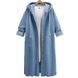 Fat MM plus size loose denim jacket for women in spring and autumn, long sleeved hooded denim cardigan, medium to long style BF women's windbreaker