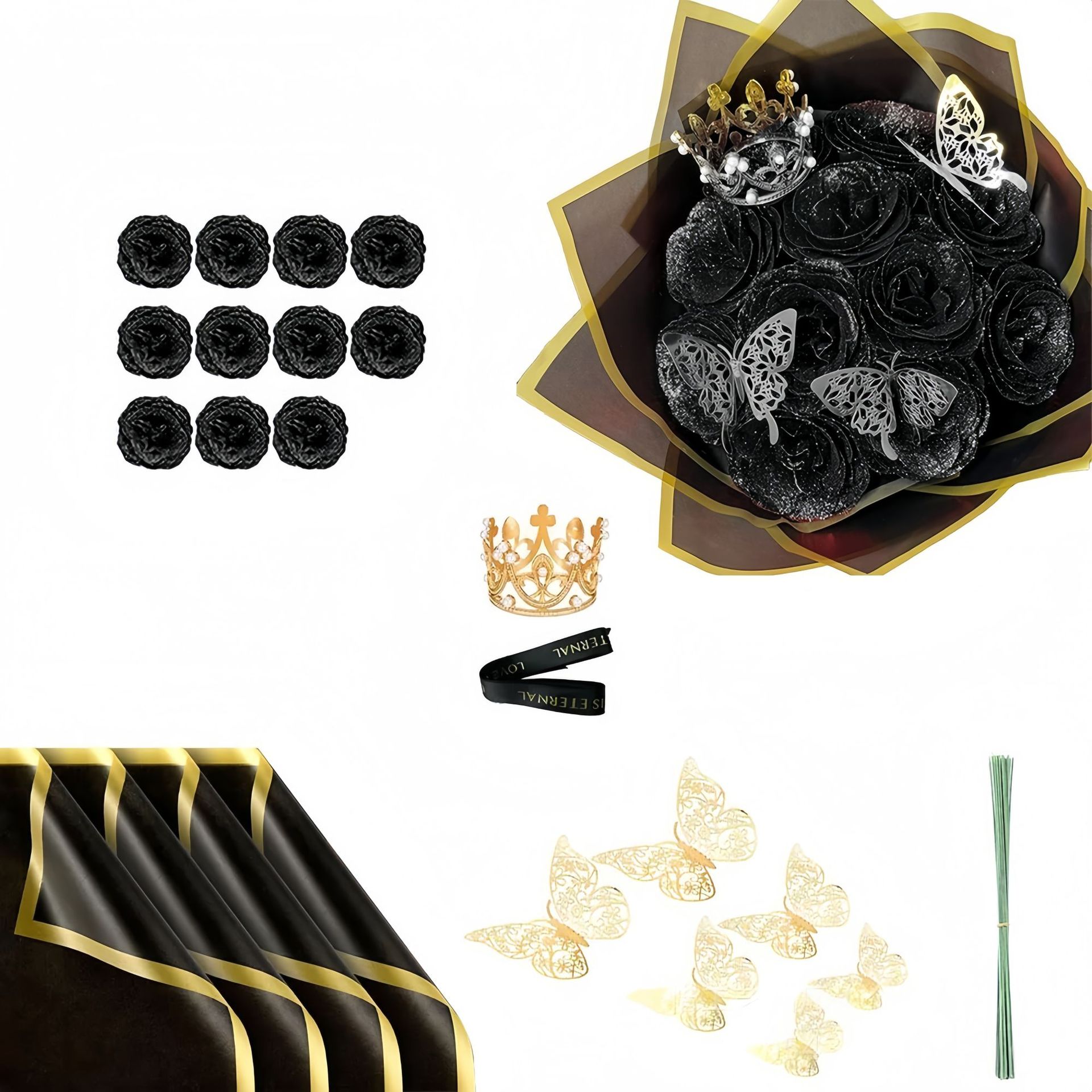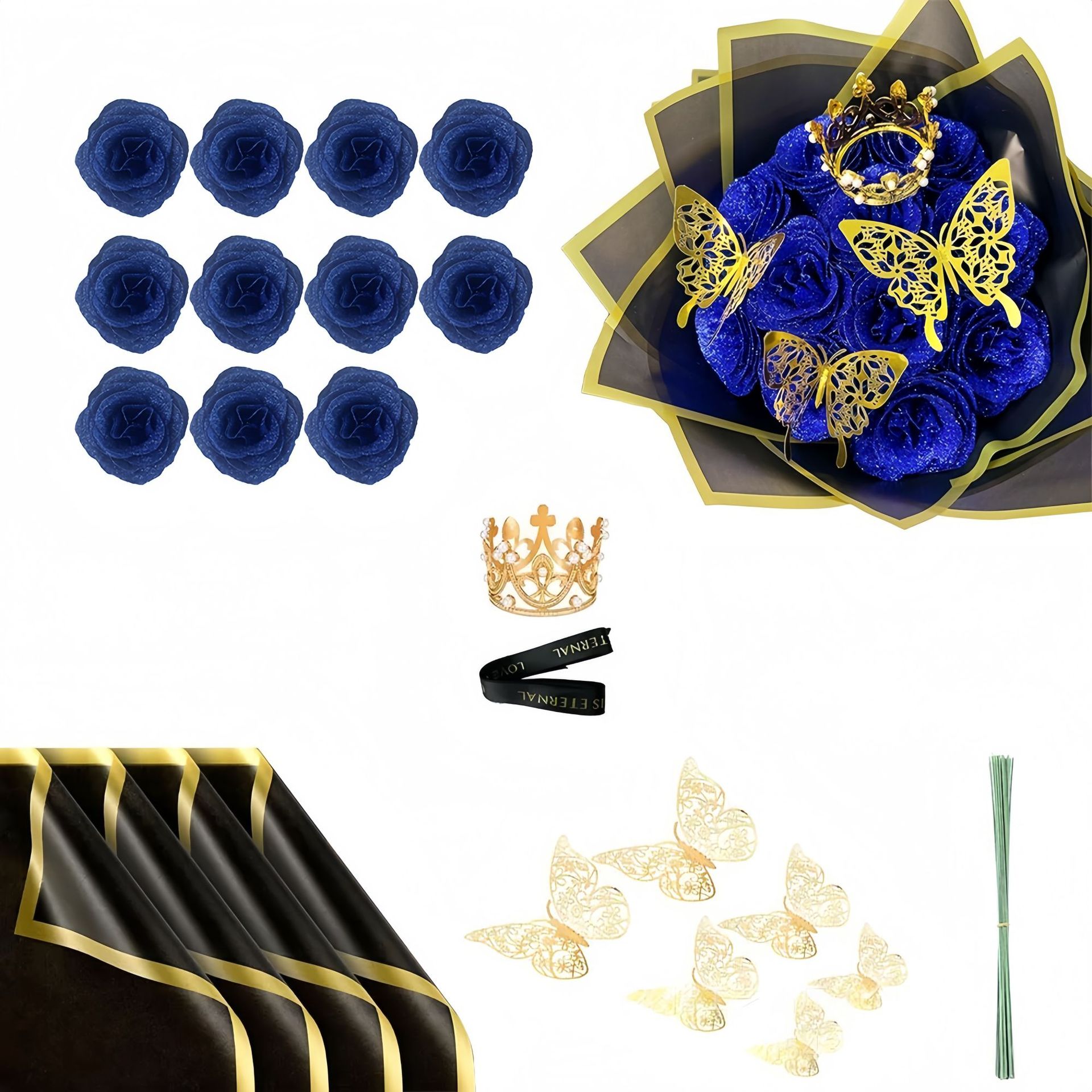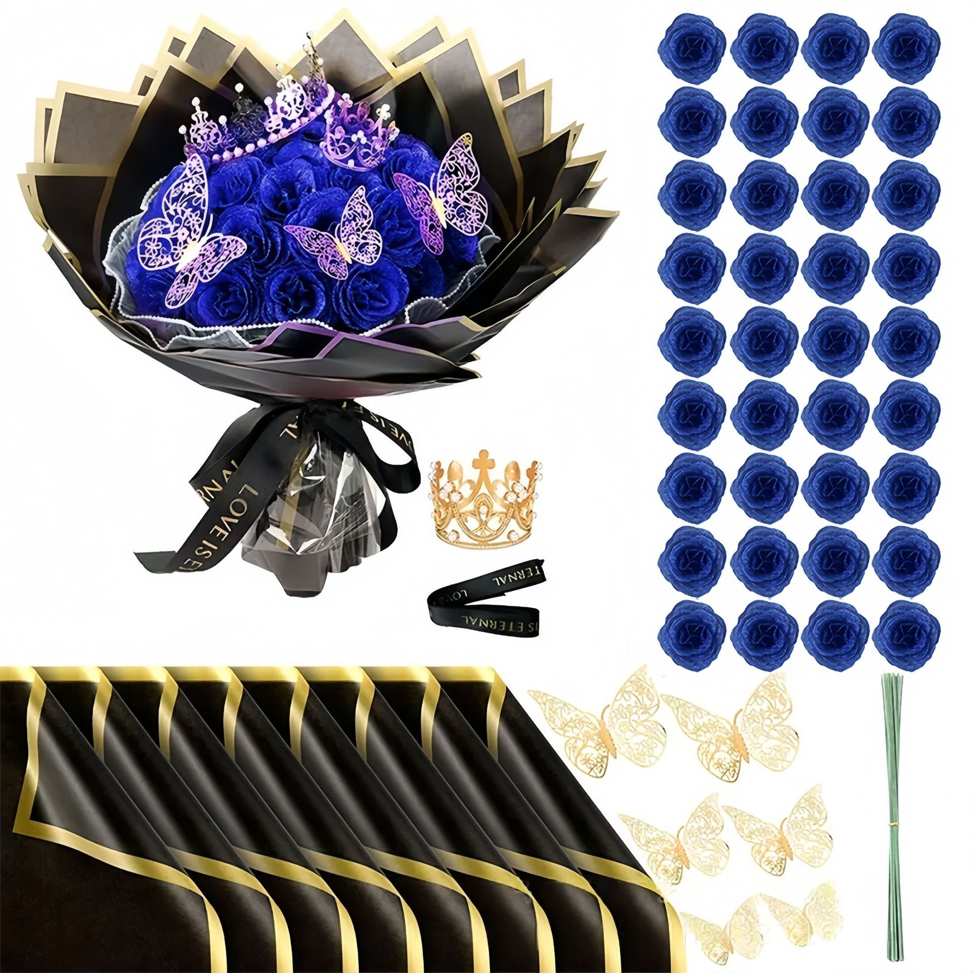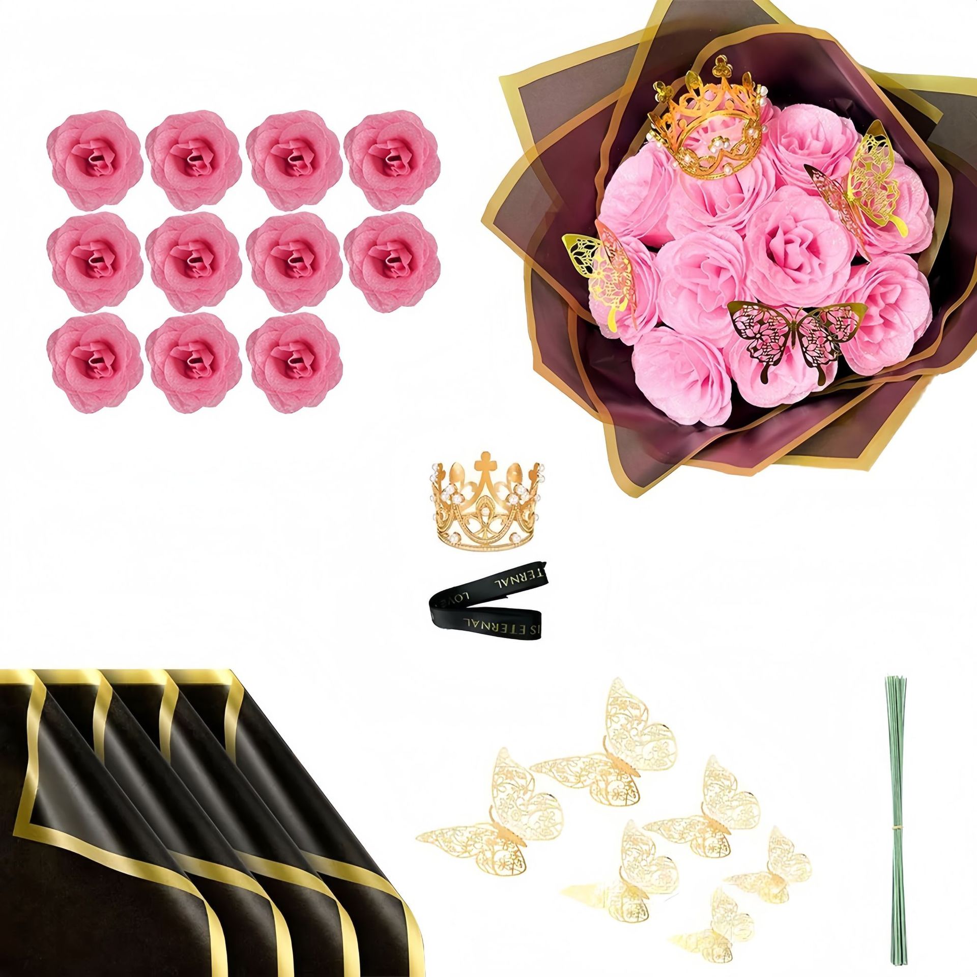 Festival Gifts Christmas Butterfly Crown 24 Glitter Rose Gold Powder Bouquet Artificial Rose DIY Wrapping Paper Valentine's Day Gift
