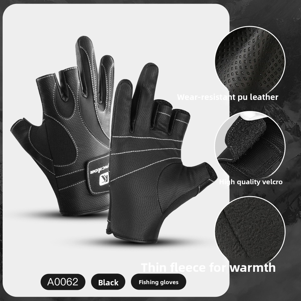 Outdoor Sports Autumn Winter Anti-Slip Three-Finger Fly Gear Wear-Resistant Fleece-Lined Fishing Gloves Wholesale