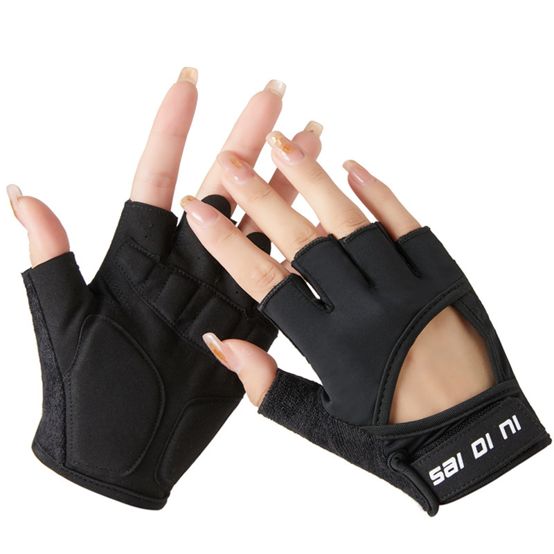 Fitnesshandskar med halva fingrar för kvinnor, träningsutrustning, halkfri, slitstark, utomhus, andningsbar, herr, spinning, cykling, gränsöverskridande A36J