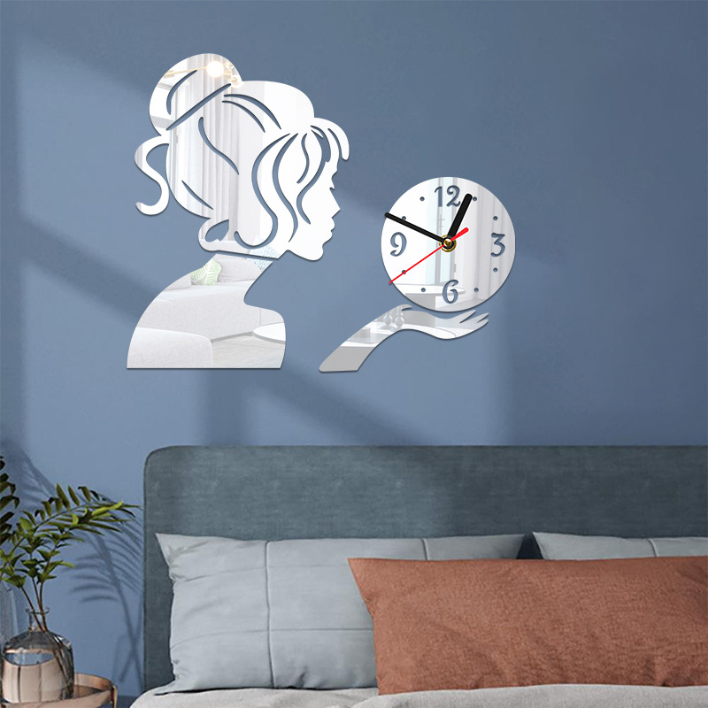 Girl Mirror Watch Creative Acrylic Wall Clock Personalized DIY Living Room Silent Clock