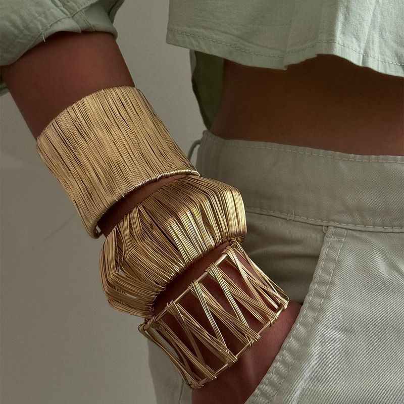 Gold Bangles Gold Bracelet Fully Managed Jewelry Personalized Design Wire Braided Bracelet Exaggerated Open Irregular Bangle
