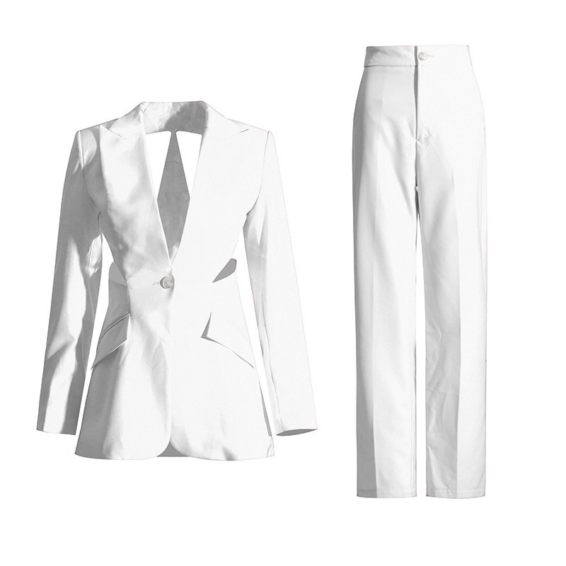 GraceChic GraceChic 2025 Autumn New Fashion High-End Two-Piece Set For Women V-Neck Hollow Out Blazer Wide-Leg Pants Suit Women's Clothing