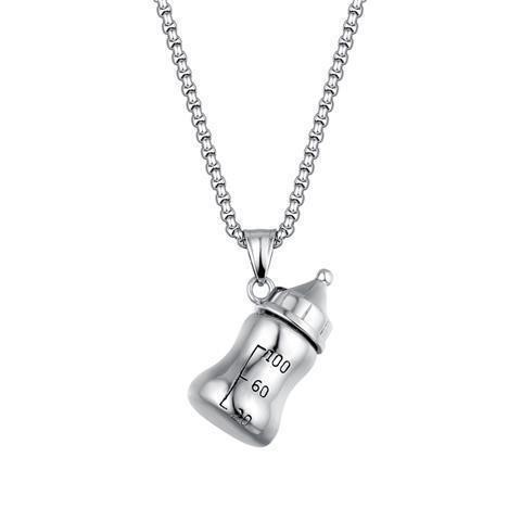 Milk Bottle Hip Hop Titanium Steel Necklace Pendant for Men and Women's Trendy Nipple Pendant, Small Crowd Collar Chain
