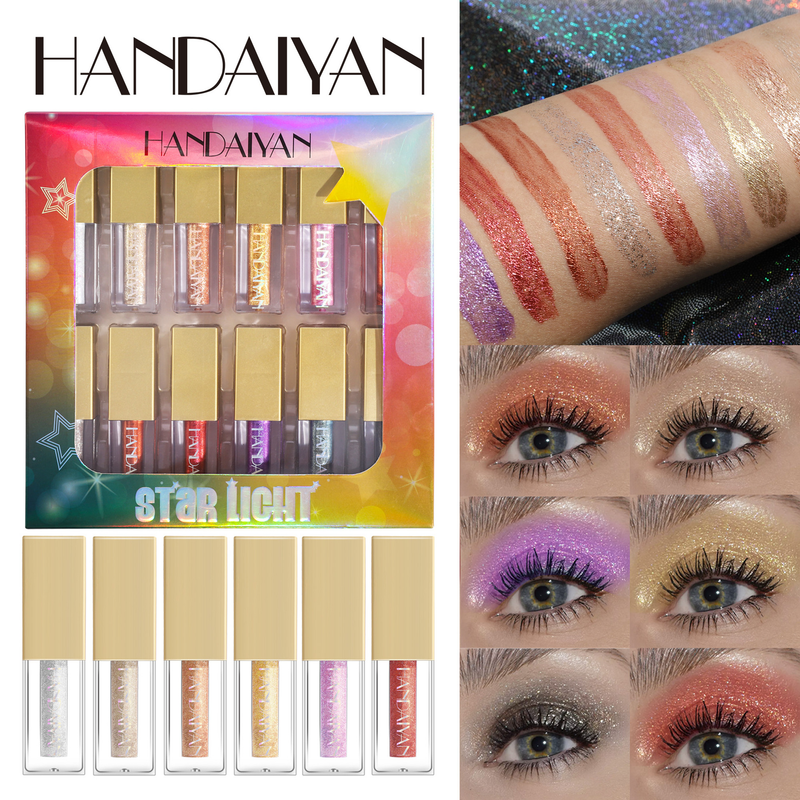 Han Daiyan handaiyan 12-färgers pärlemorskimrande flytande ögonskuggsset för nattklubbsblixtögonskugga