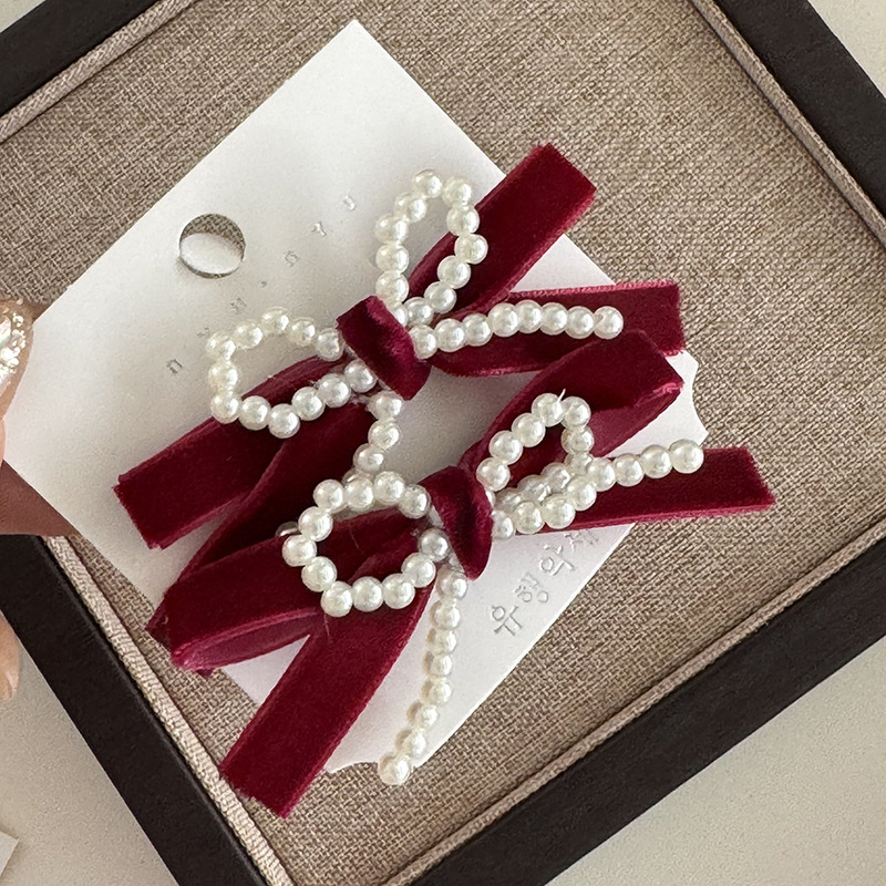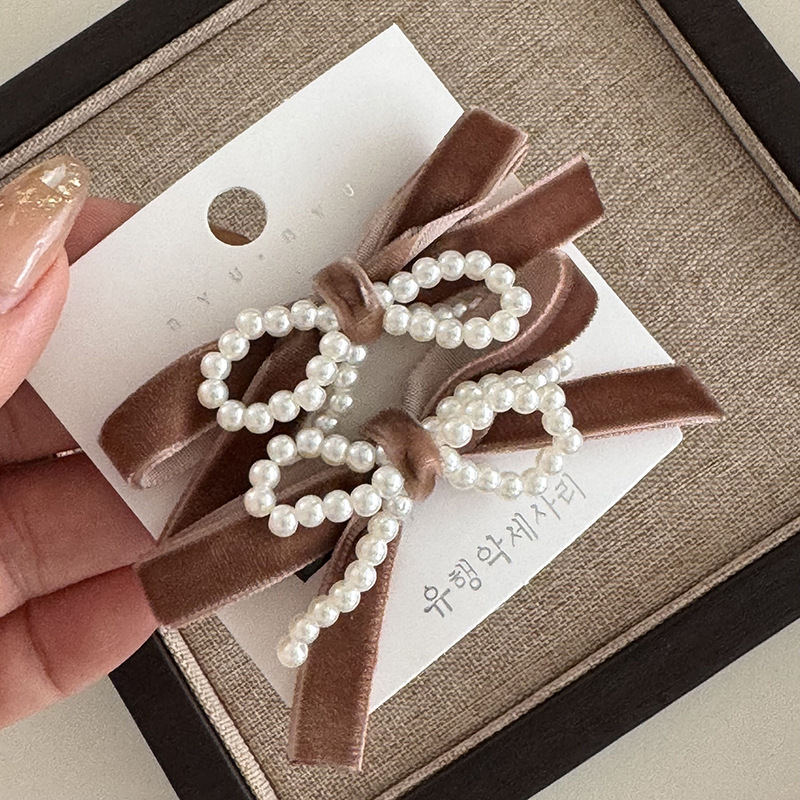 Handgjord pärlrosett sammet hårnål kvinnlig lugg klämma tillbaka huvudbonad håraccessoarer flicka sida klämma topp klämma håraccessoarer