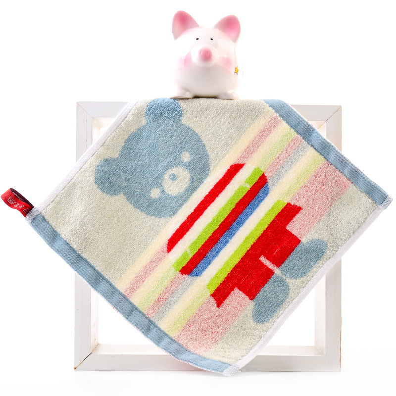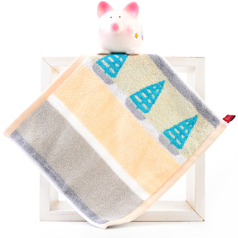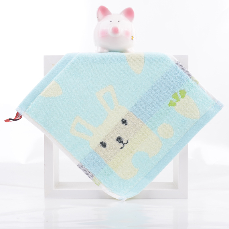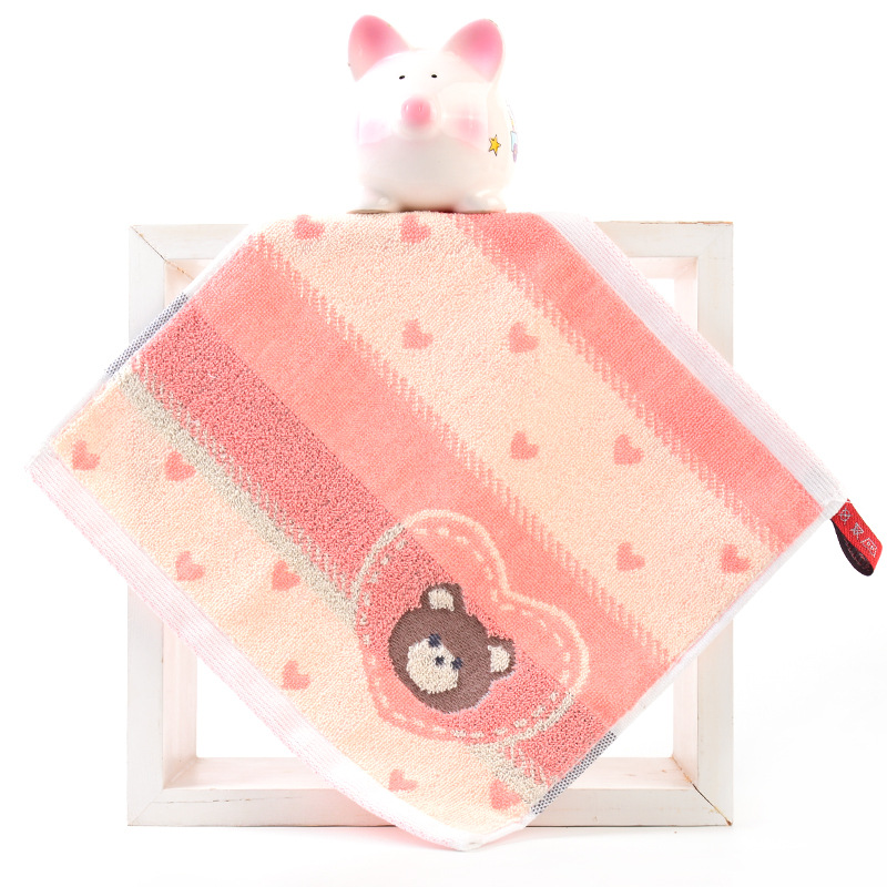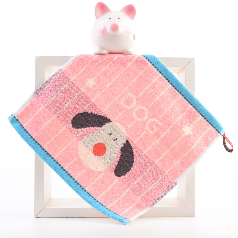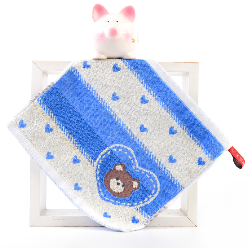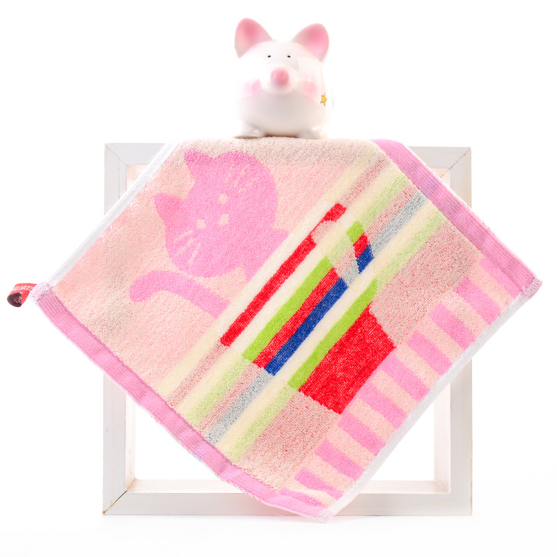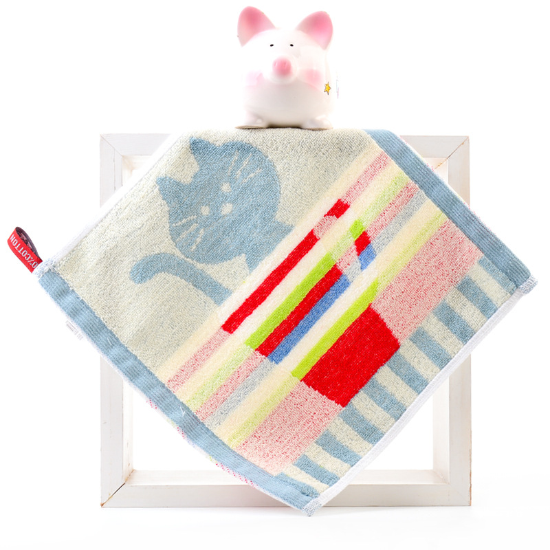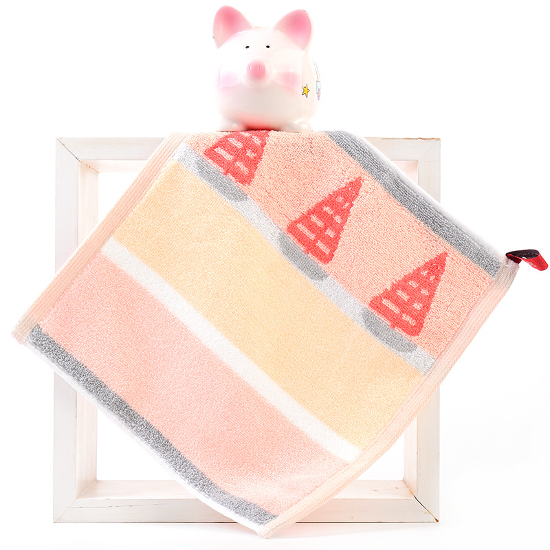 Hanging type in-stock all-cotton square towel for babies and children, suitable for kindergarten, face wash towel, 25*25cm, thick and absorbent handkerchief