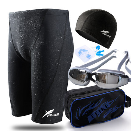Men's Quick Drying Waterproof Sharkskin Swim Trunks 5-Point Plus Size Men's Swimsuit With Cap And Goggles Swim Equipment