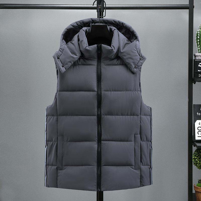 Herrkläder Ny höst- och vinterväst i bomull med avtagbar huva för kylskydd utomhus och värme förtjockad väst moderiktig
