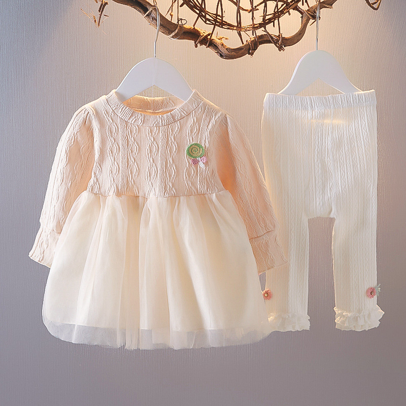 barnkläder Barnkläder Höst flickor skarva långärmade barns tvådelade set