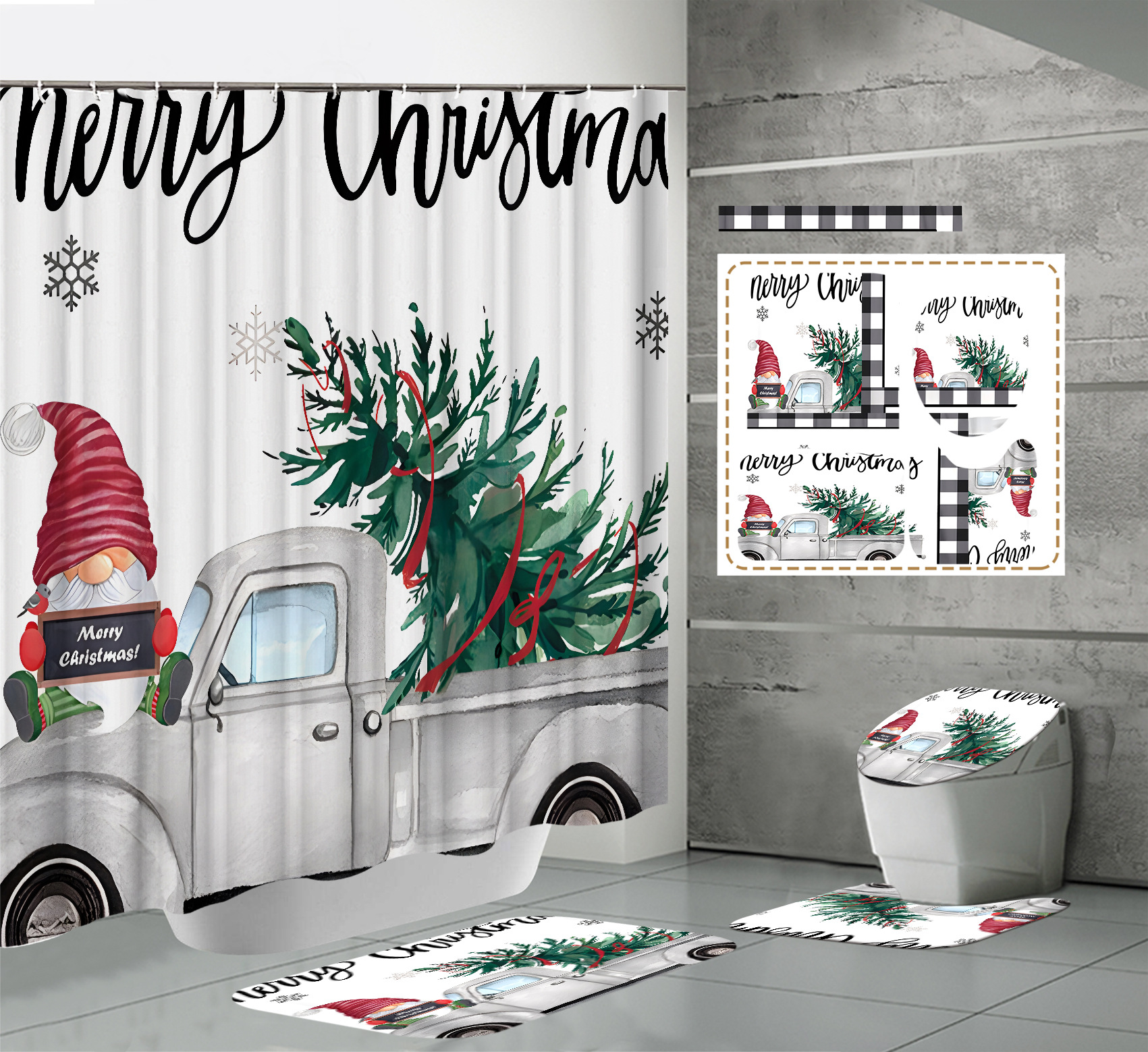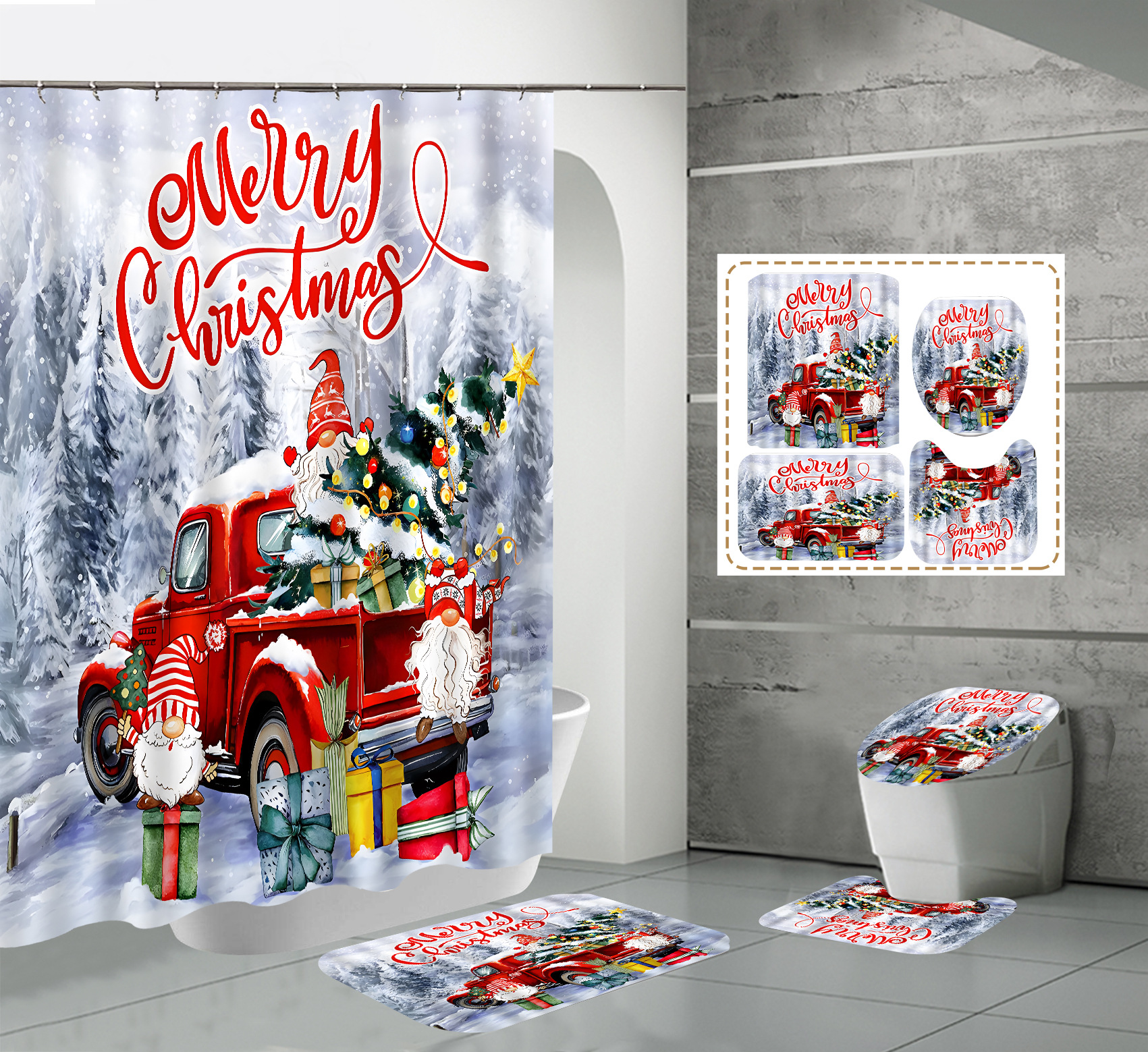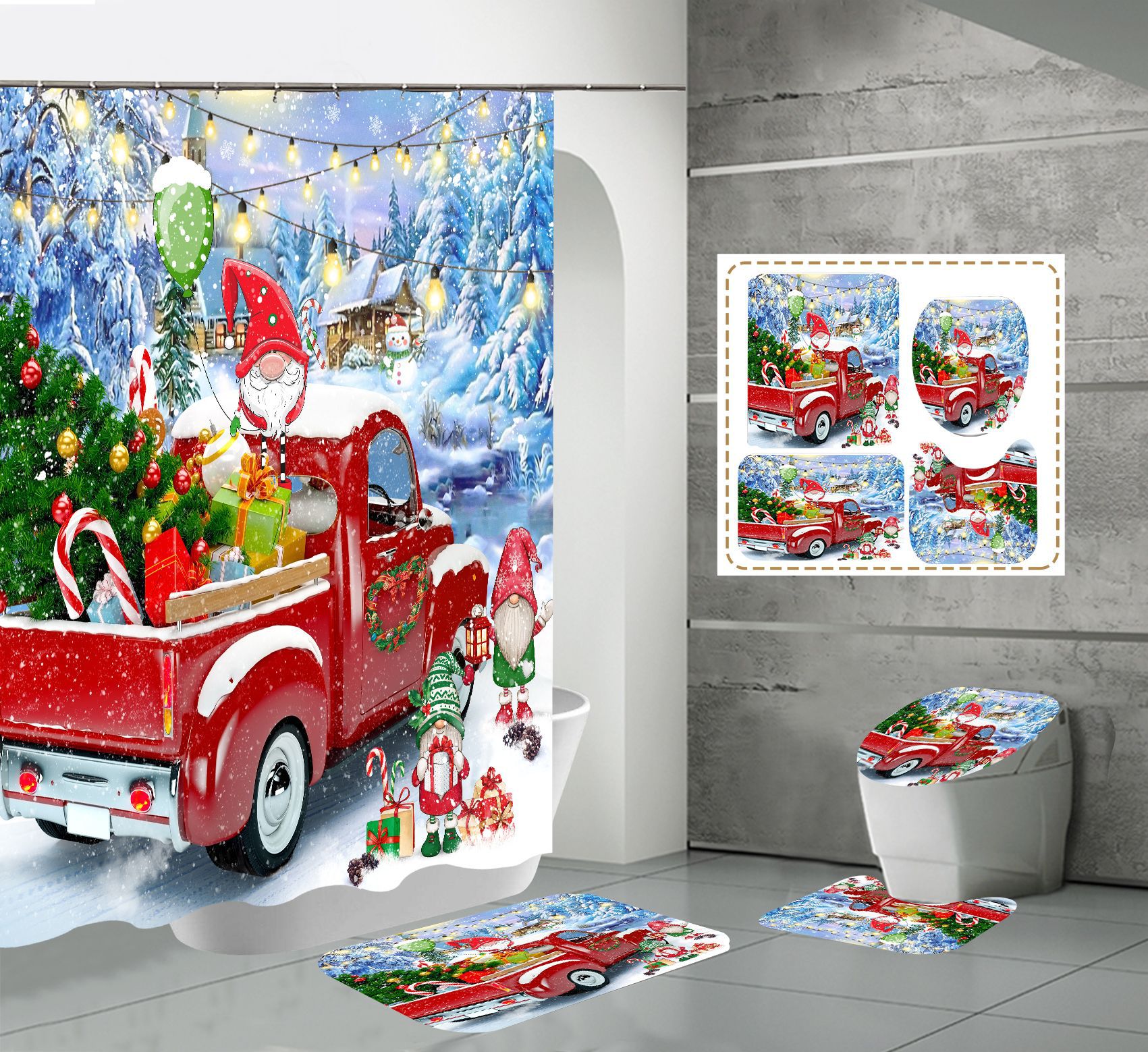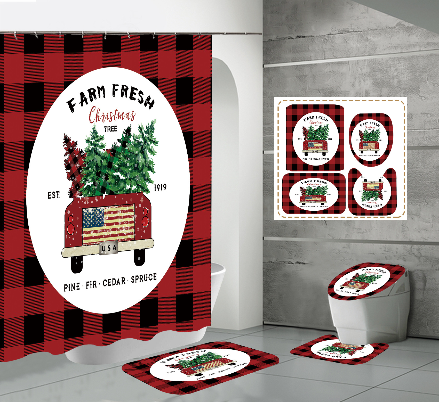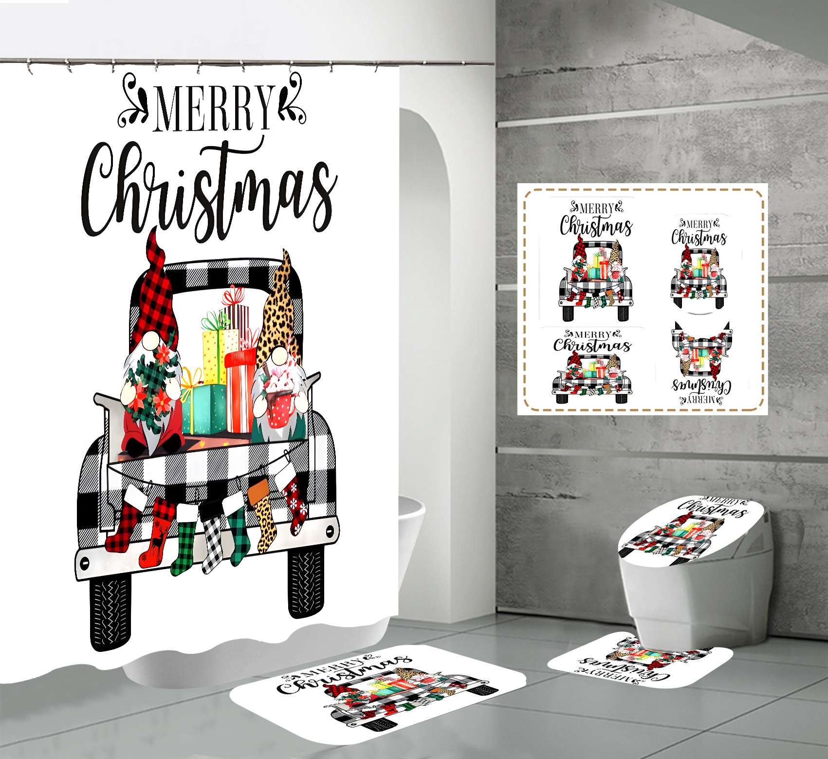 Fyra delar duschdraperi golvmatta U-formad matta toalettöverdrag 700g