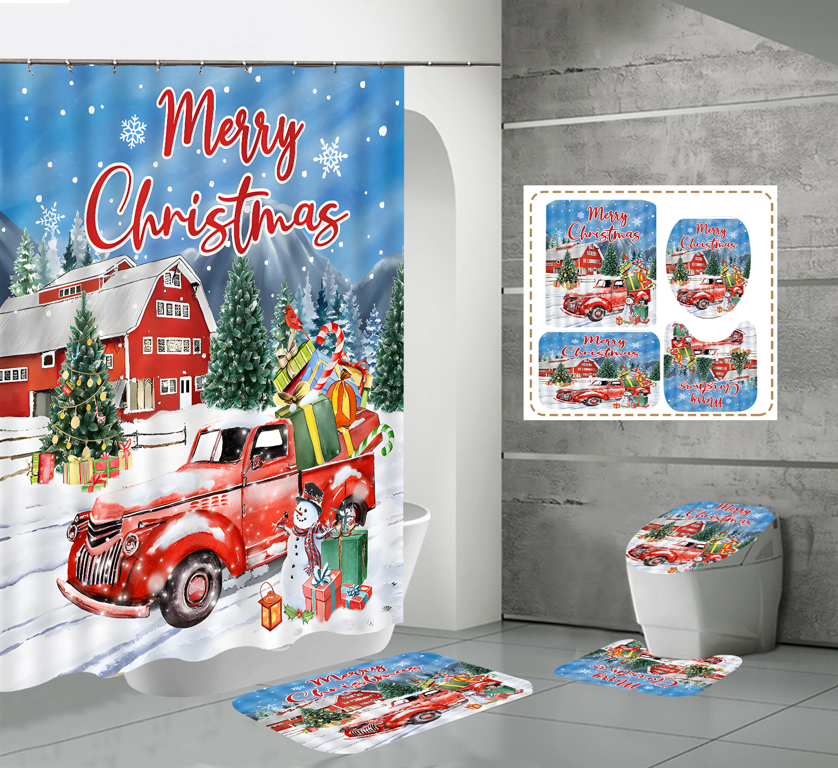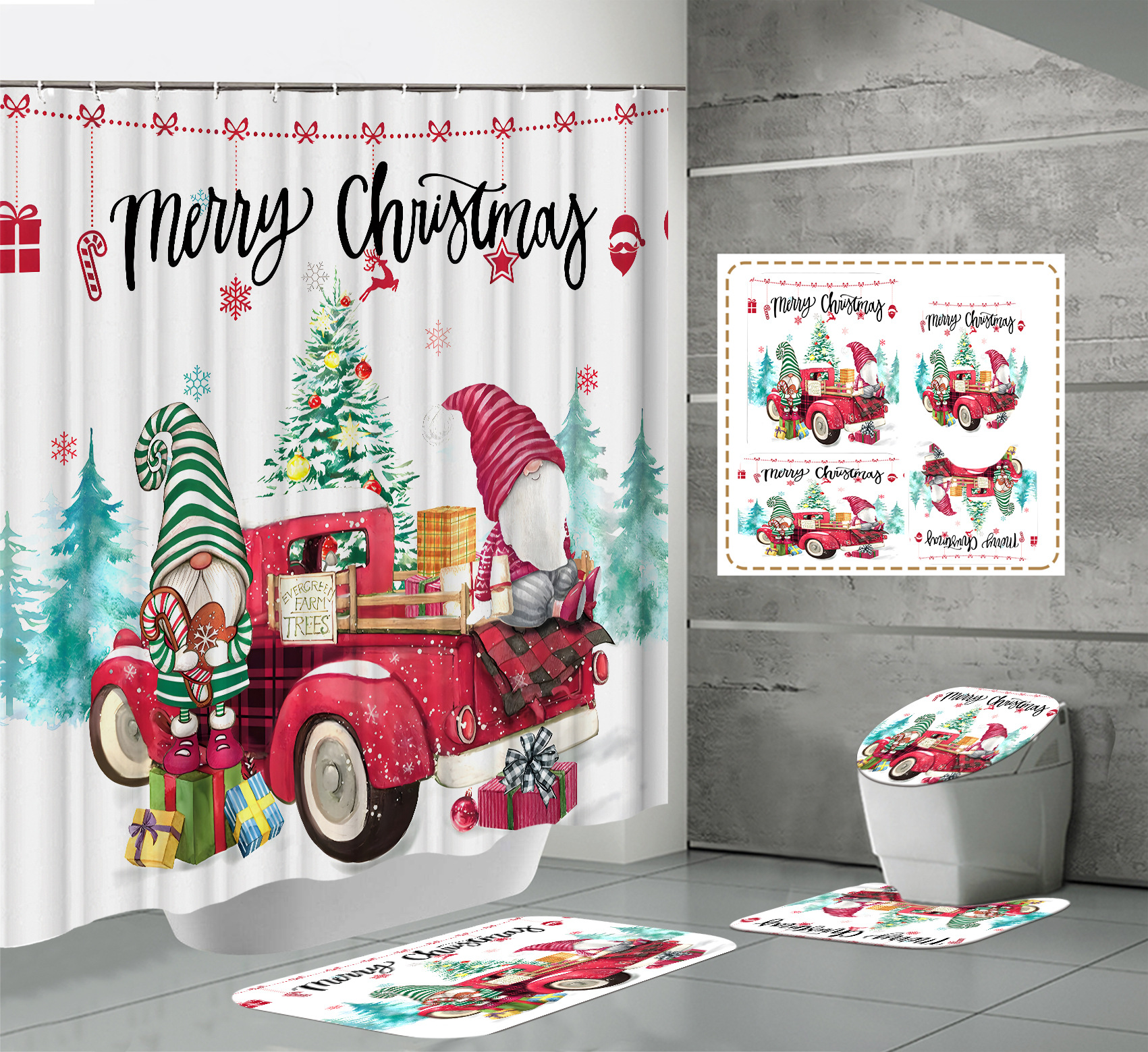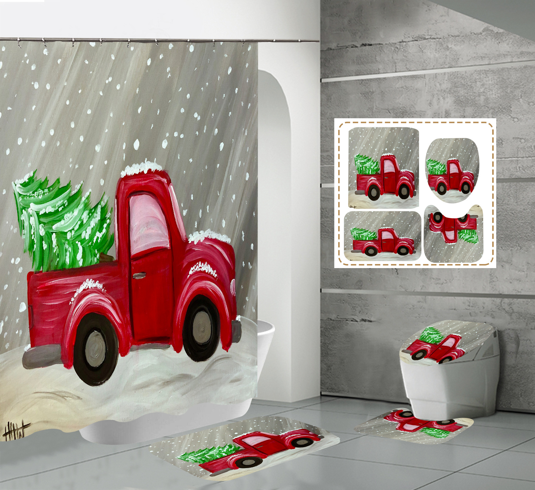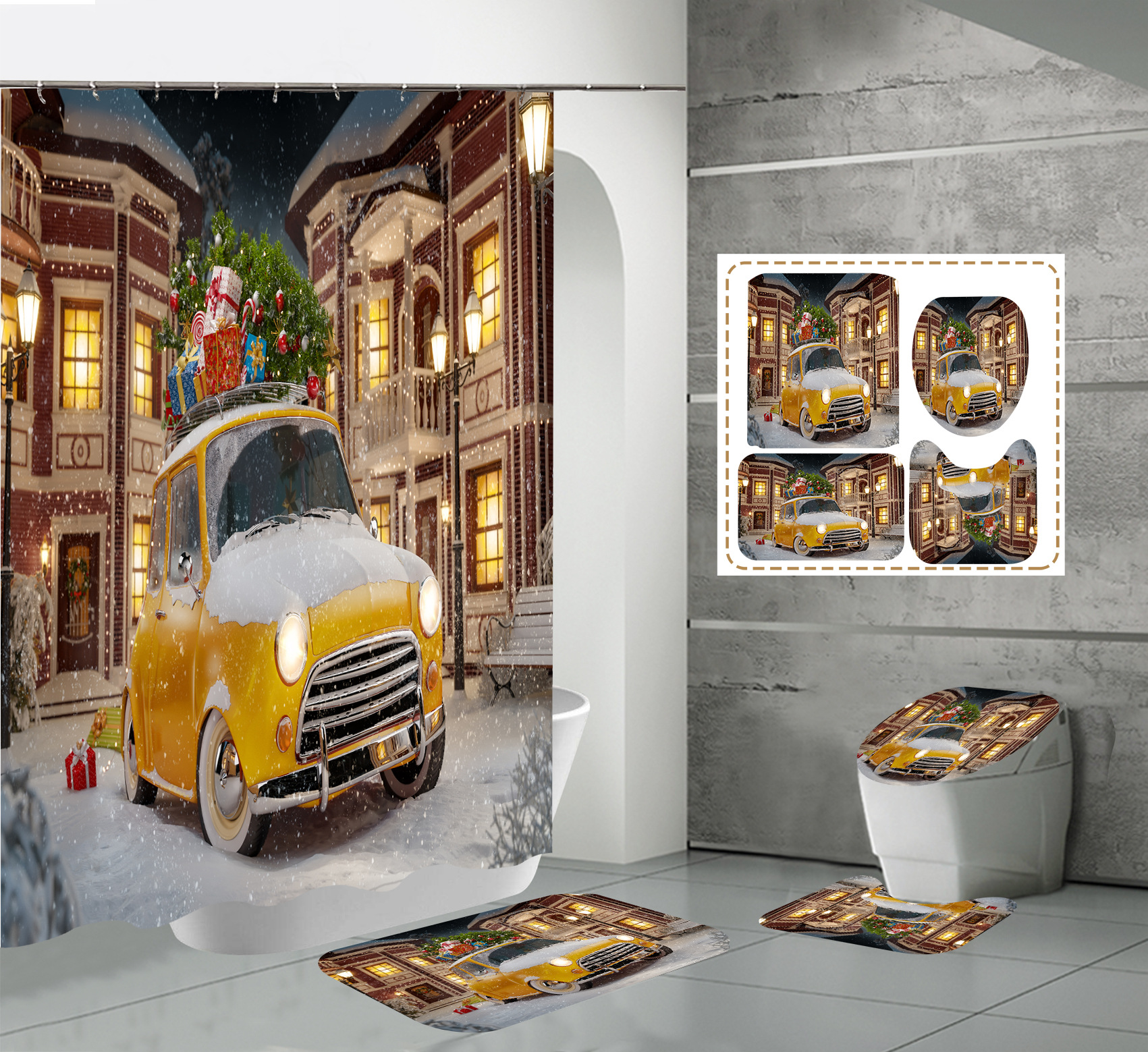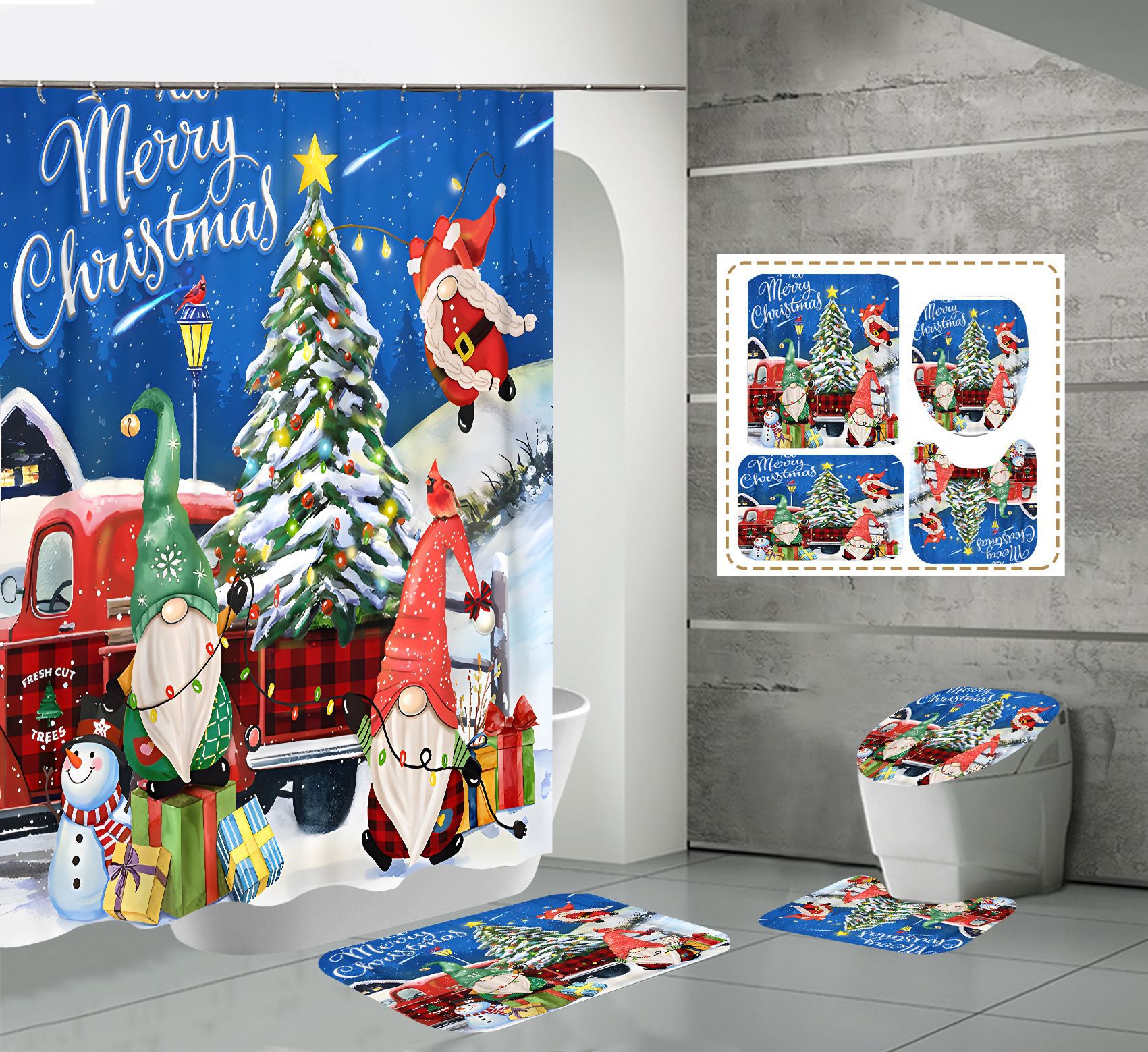Fyra delar duschdraperi golvmatta U-formad matta toalettöverdrag 700g