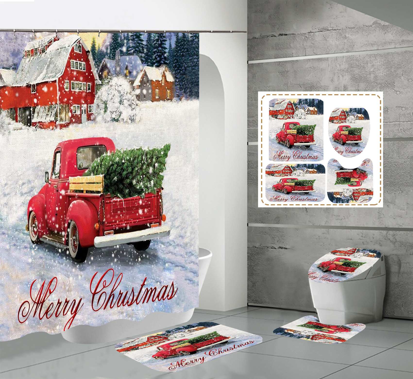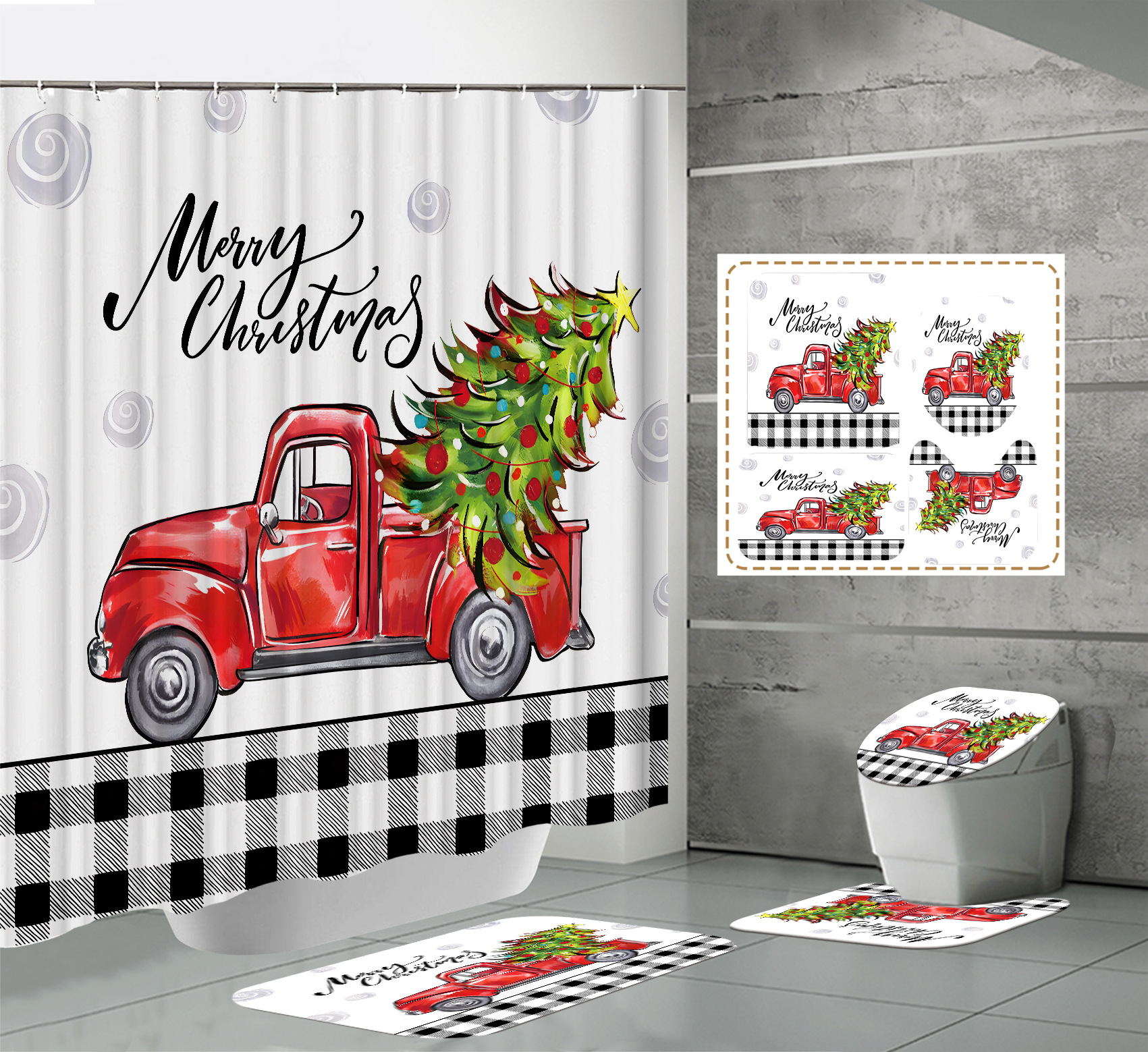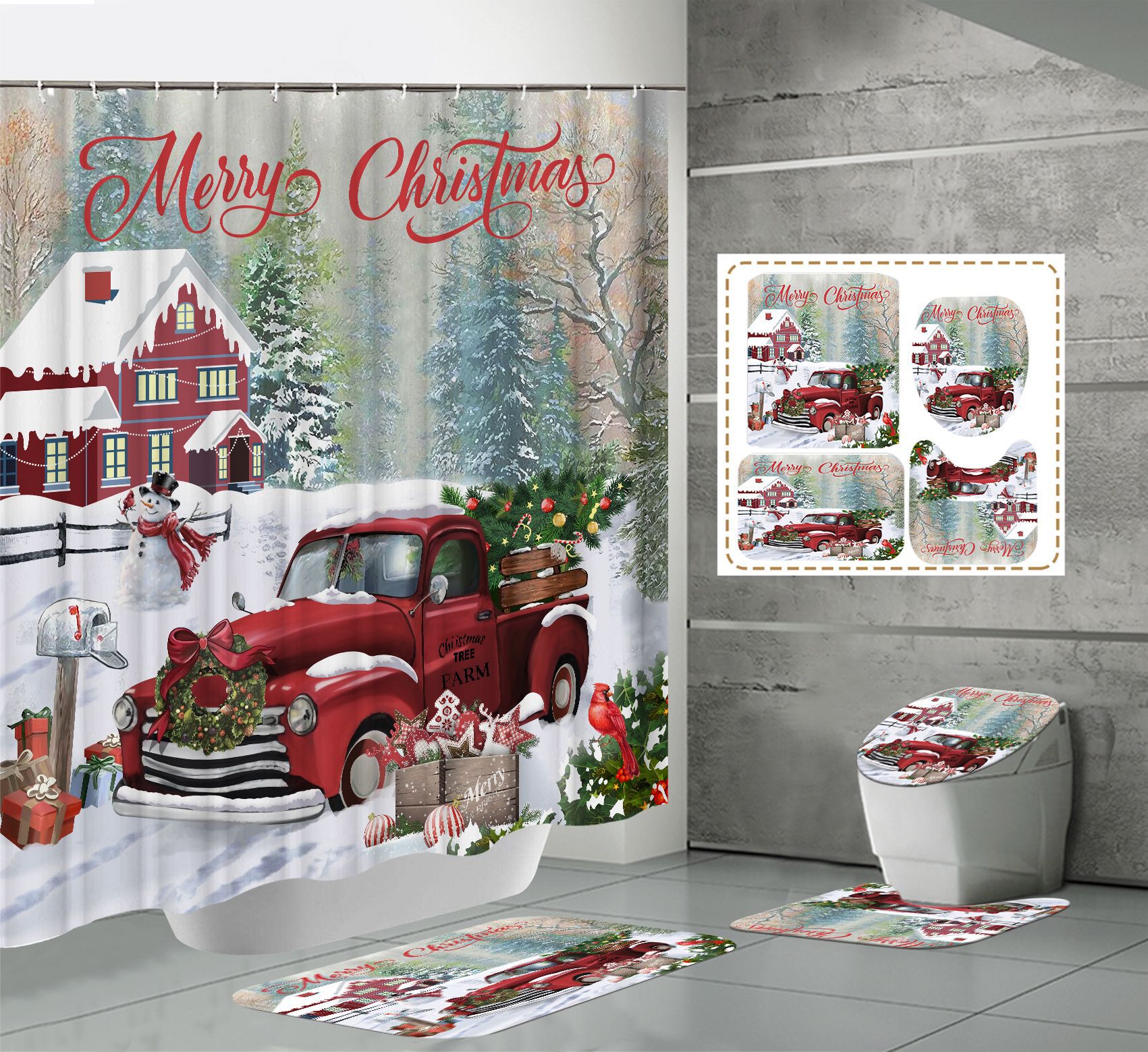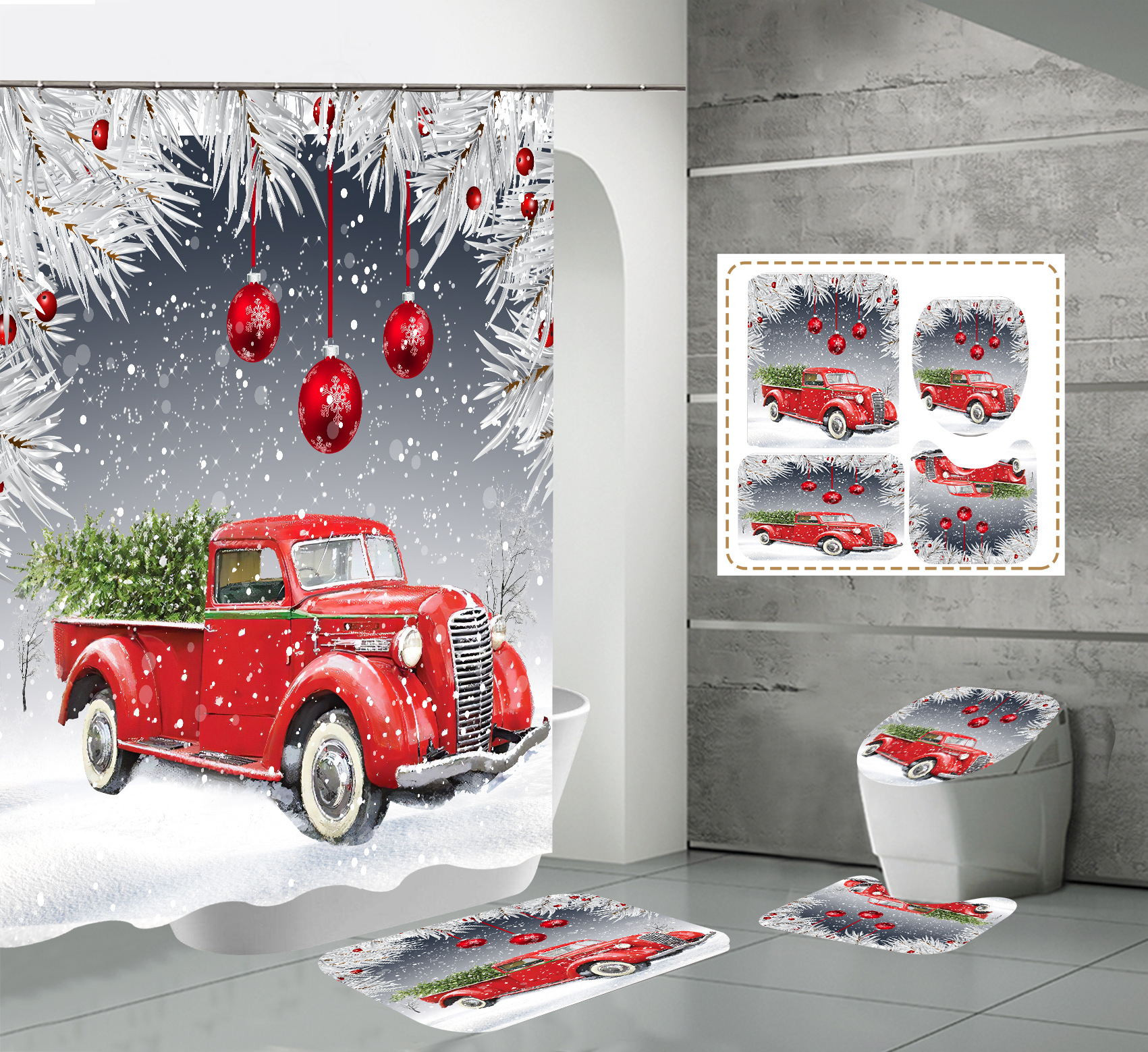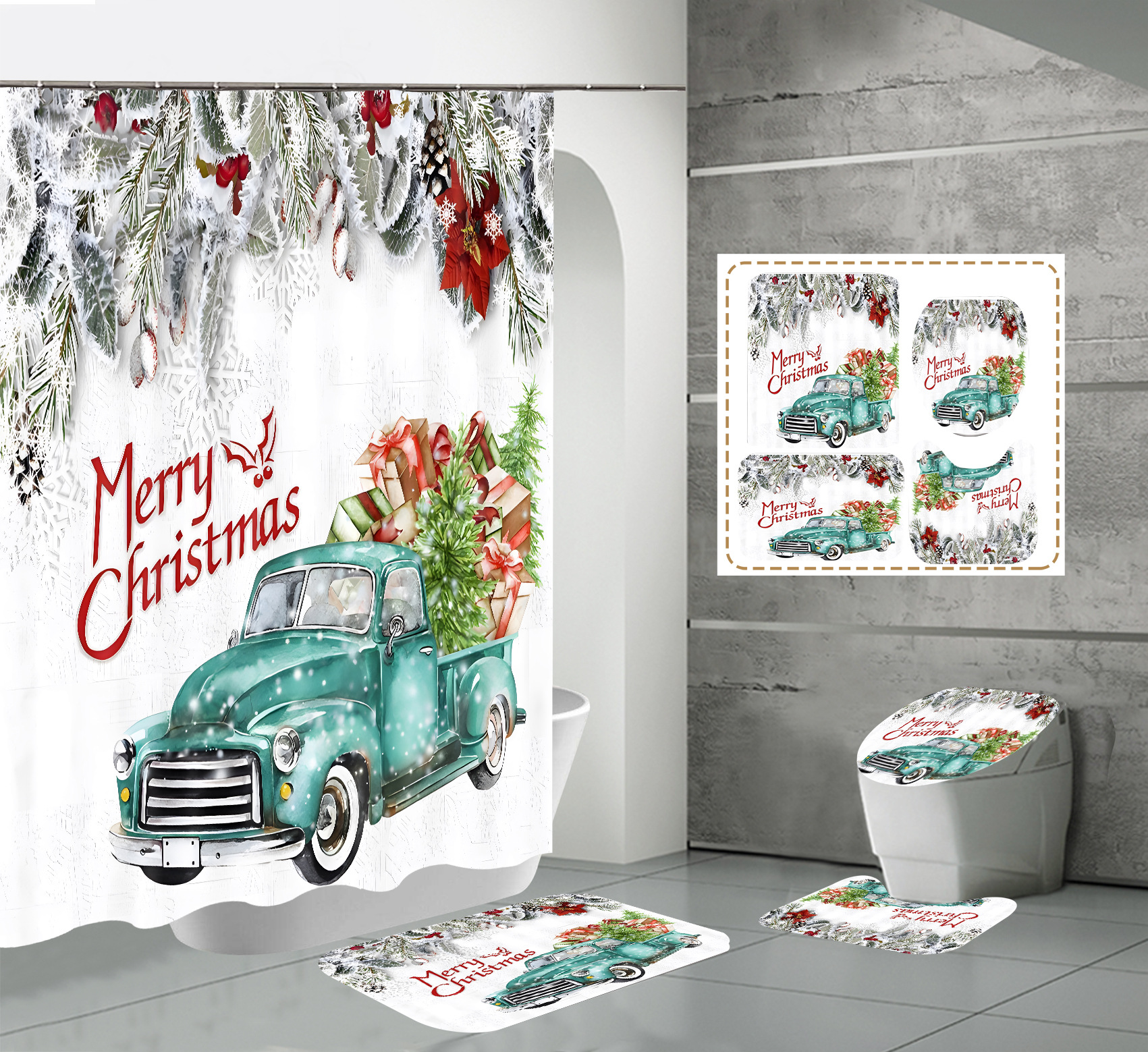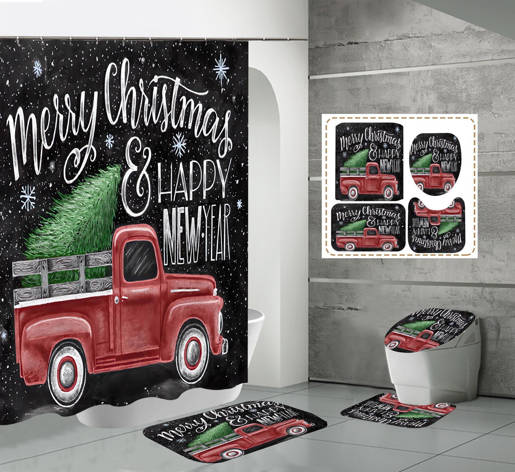 Fyra delar duschdraperi golvmatta U-formad matta toalettöverdrag 700g