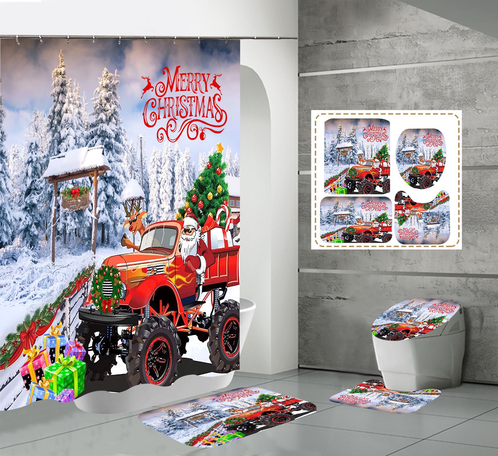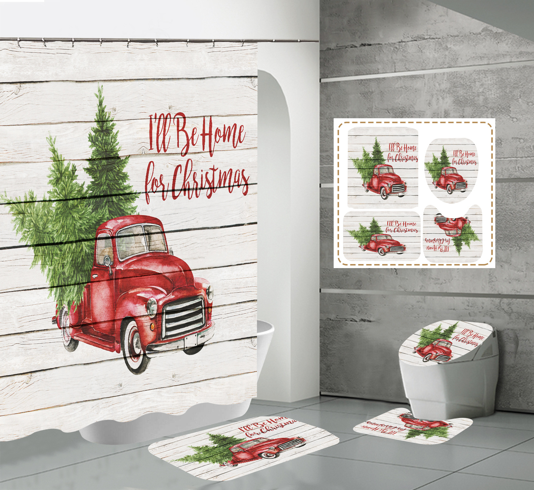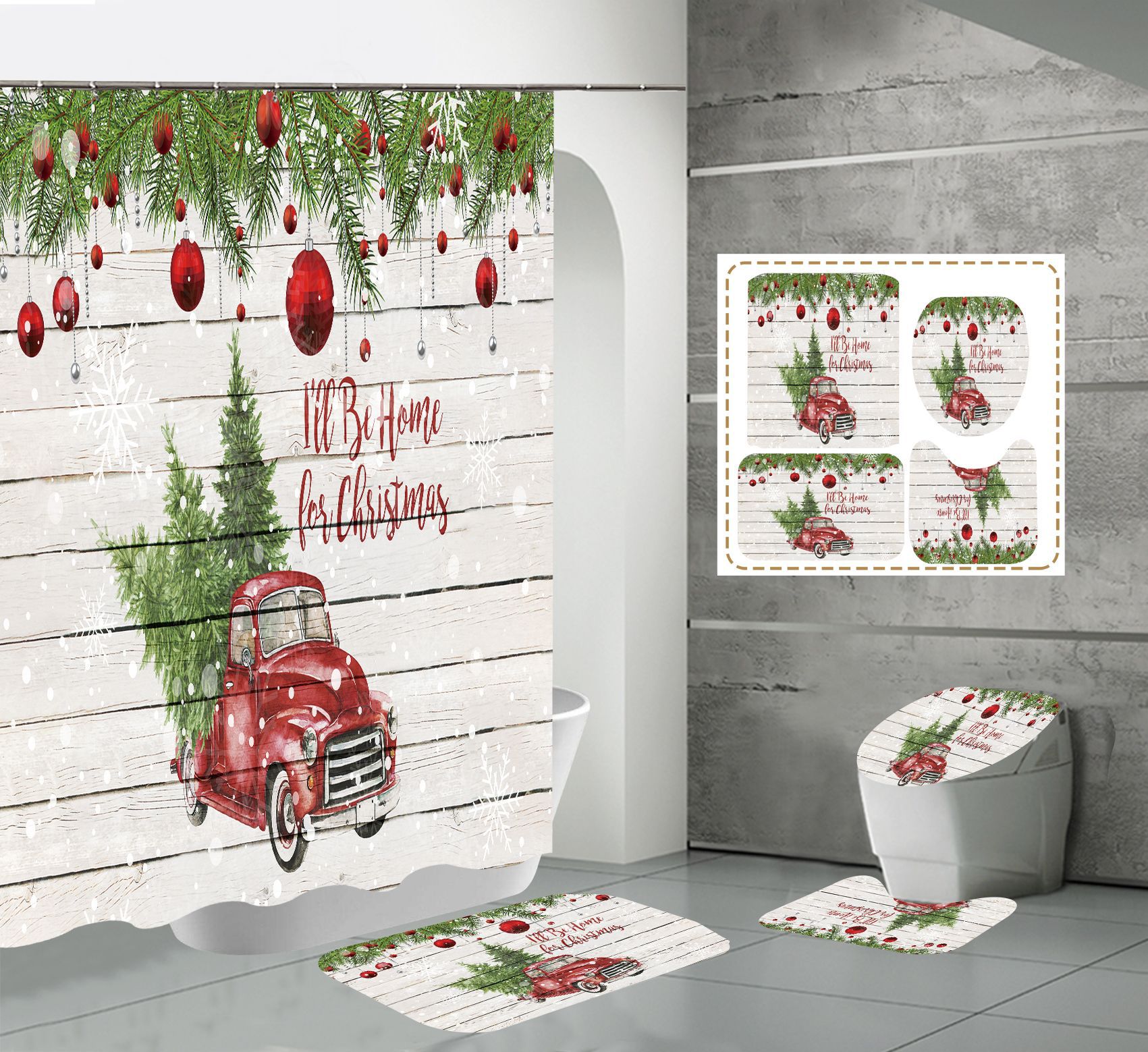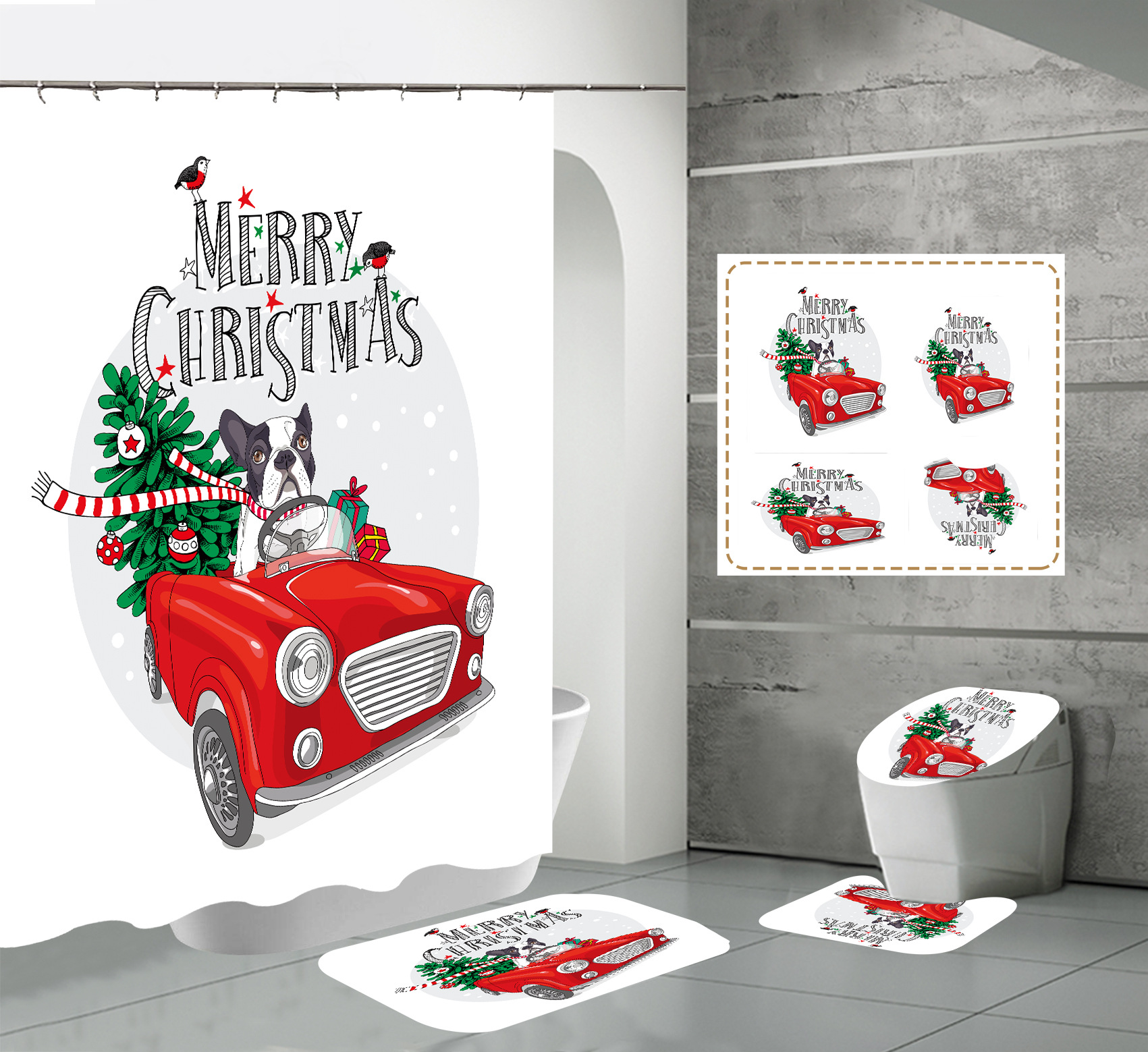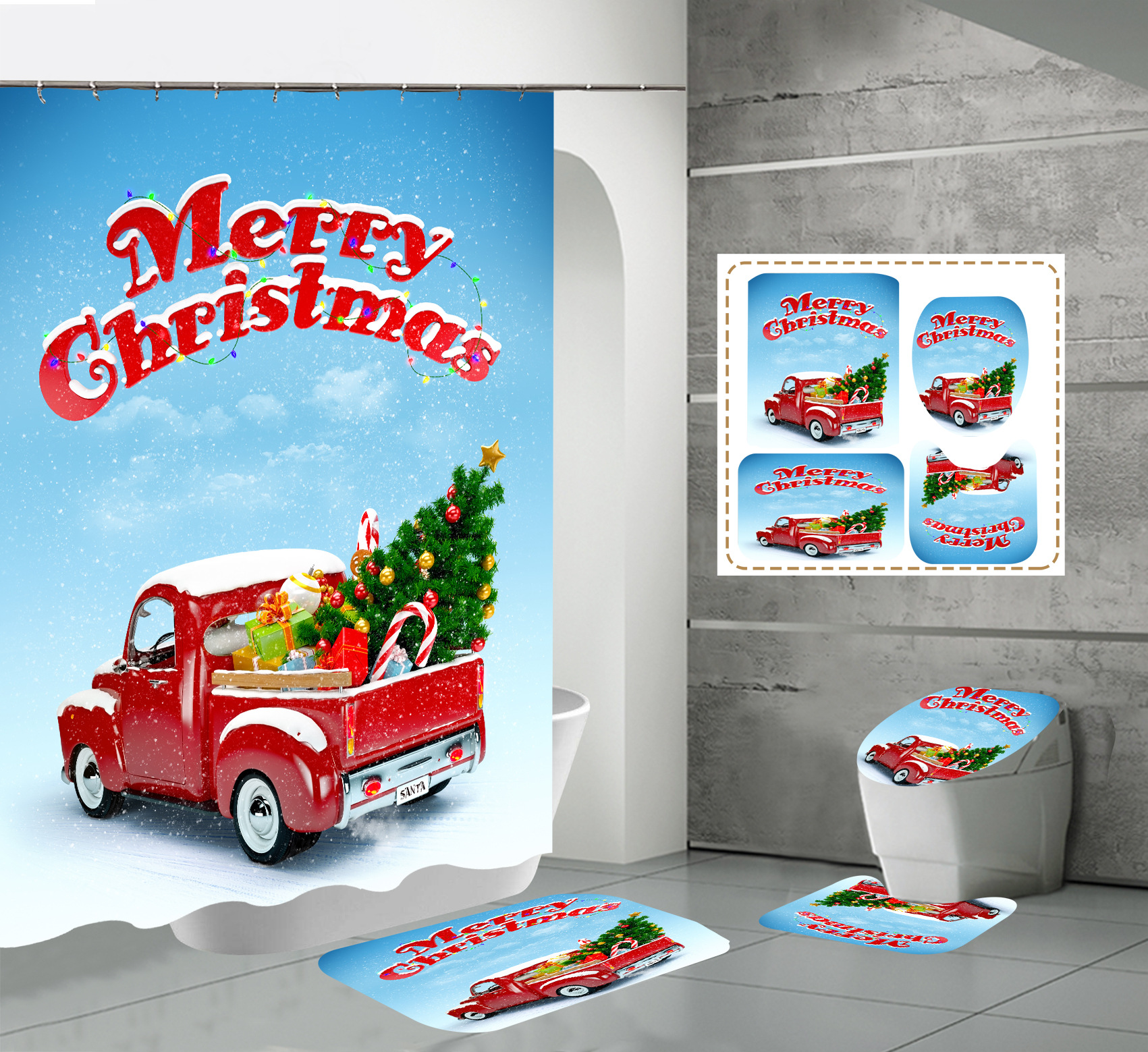 Fyra delar duschdraperi golvmatta U-formad matta toalettöverdrag 700g