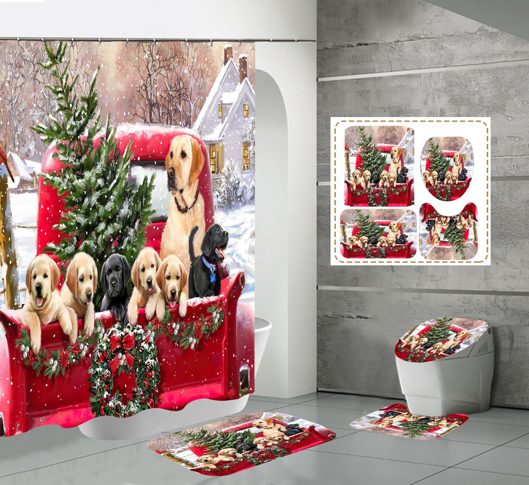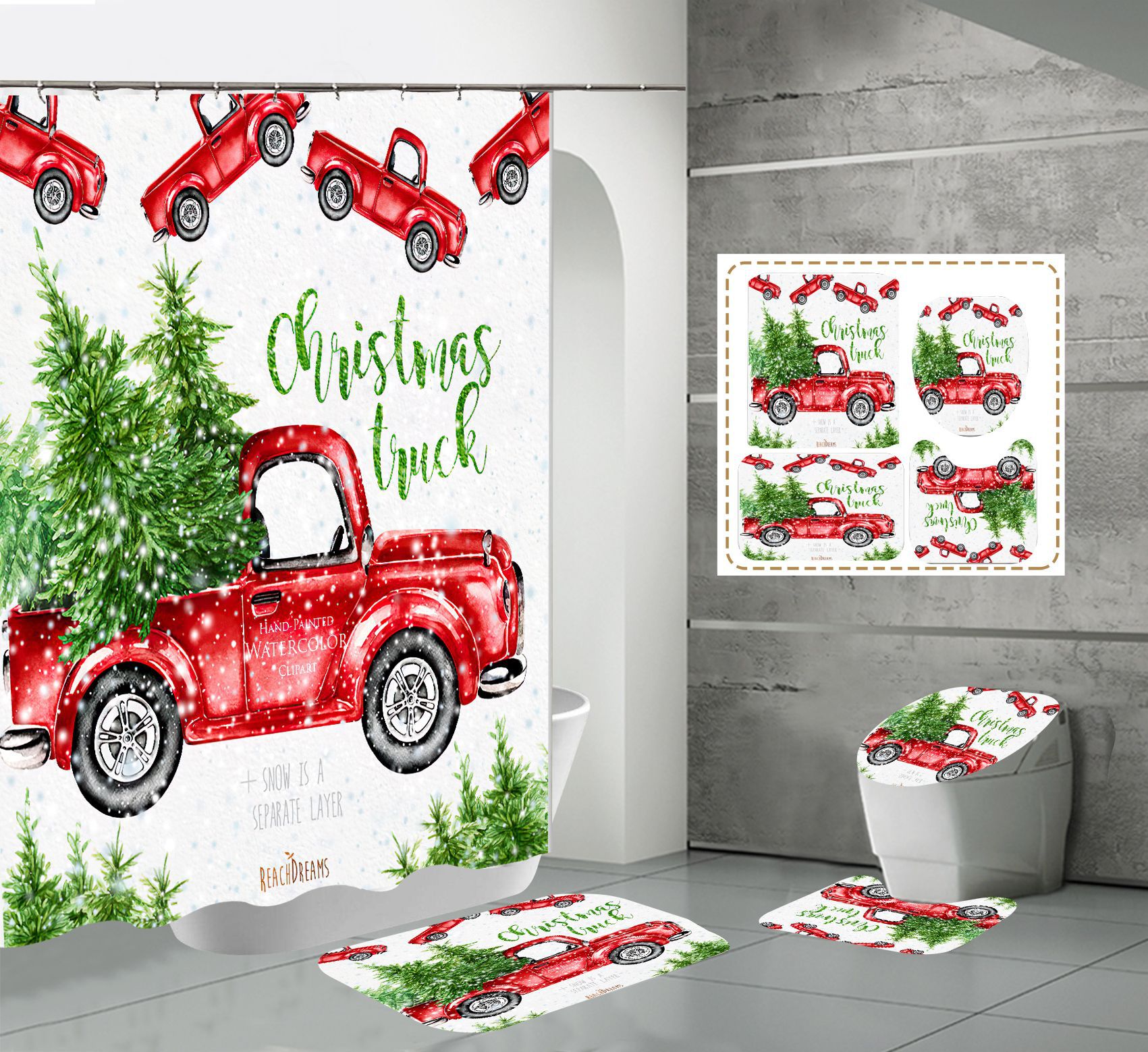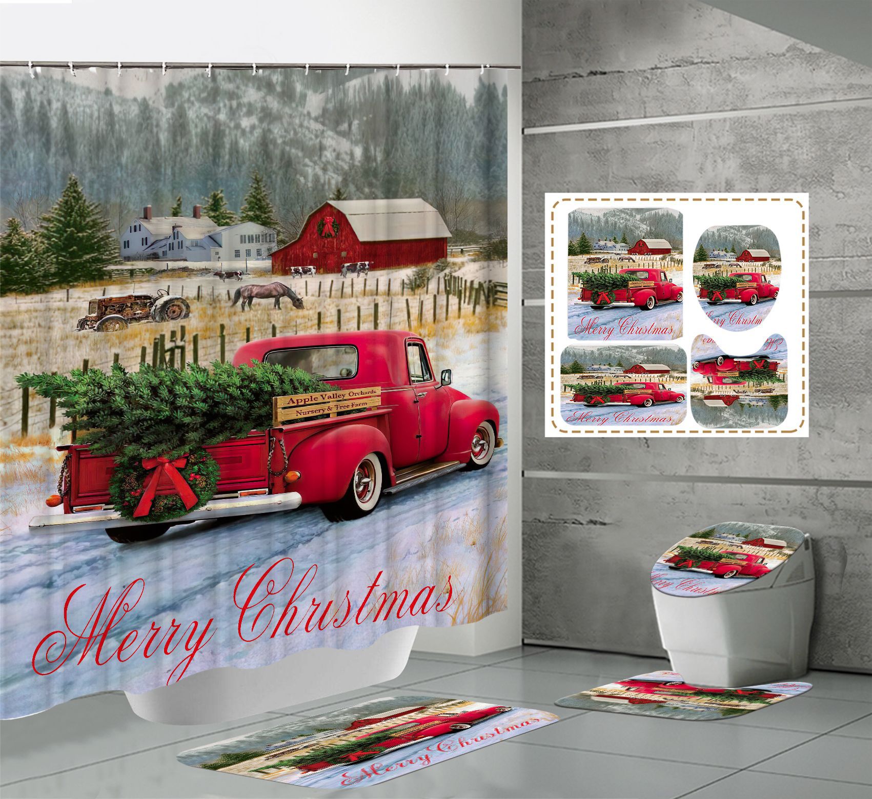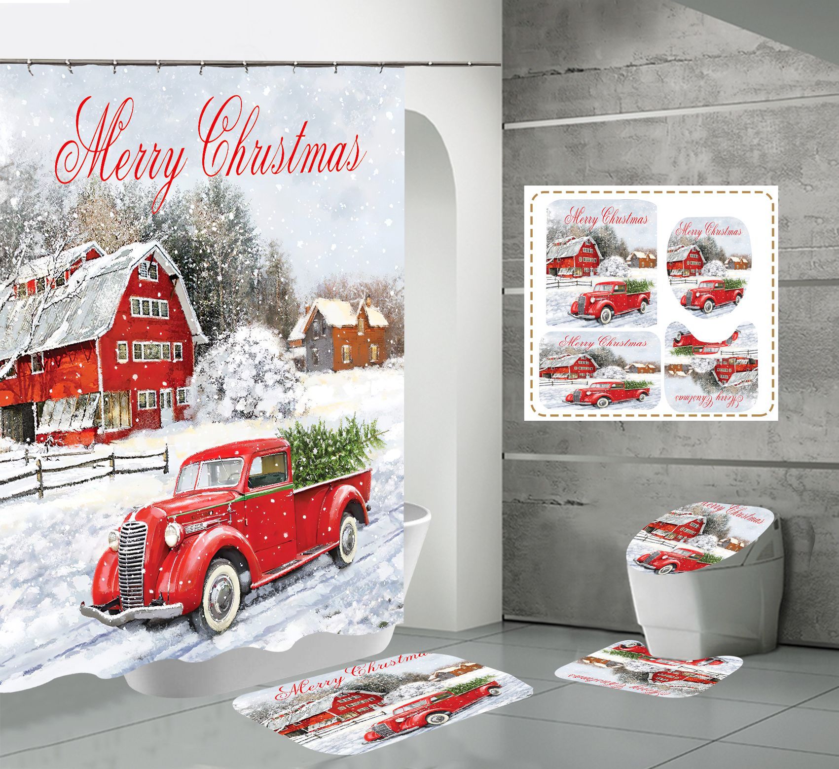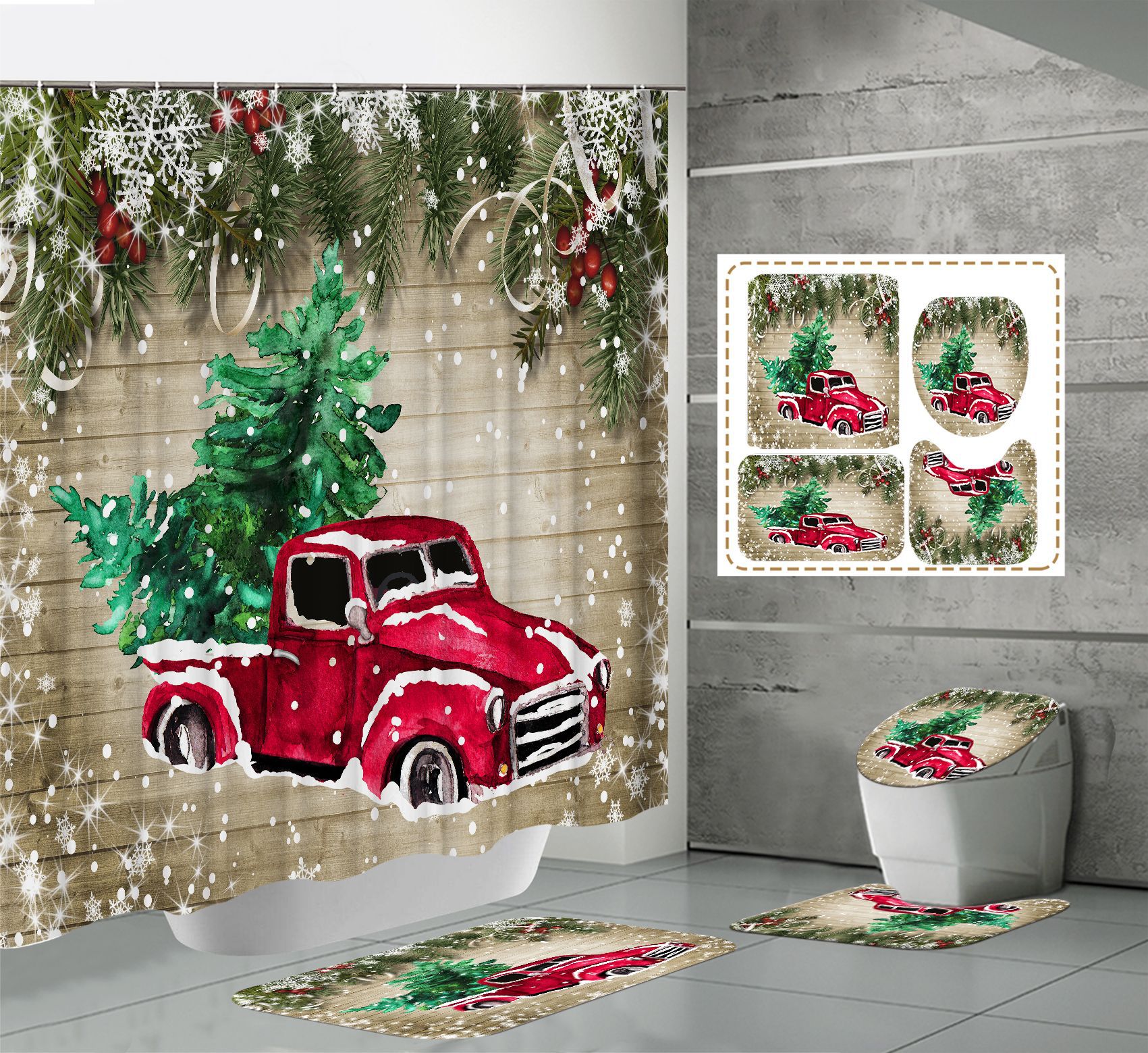 Fyra delar duschdraperi golvmatta U-formad matta toalettöverdrag 700g