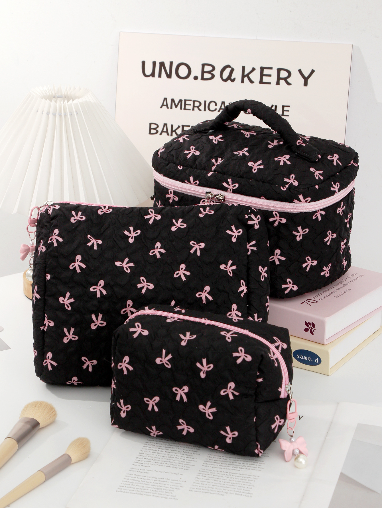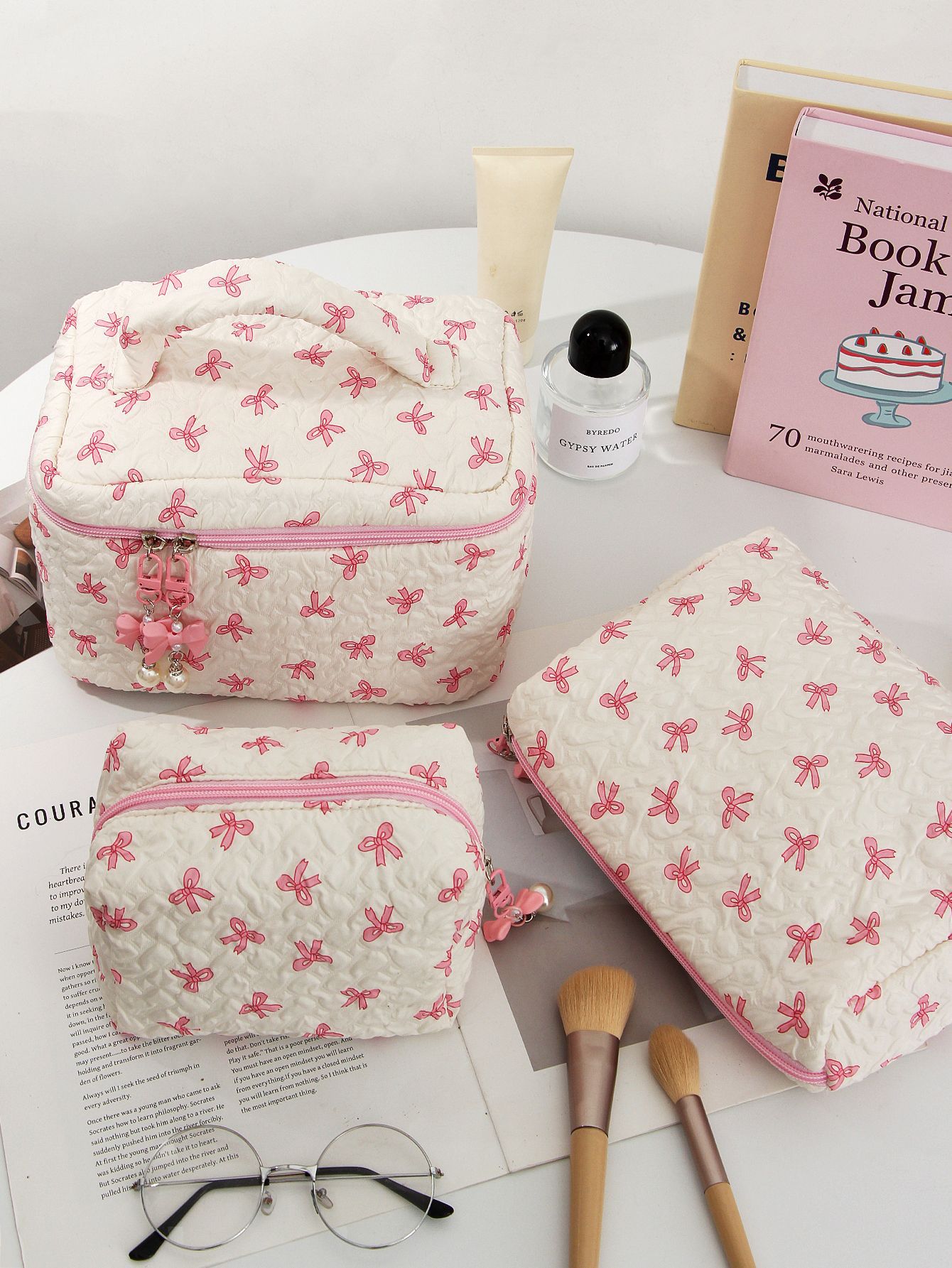 Ins Style Pleated Small Bow Cosmetic Bag Niche Design Convenient Lipstick Handbag Female High End Clutch Bag Female
