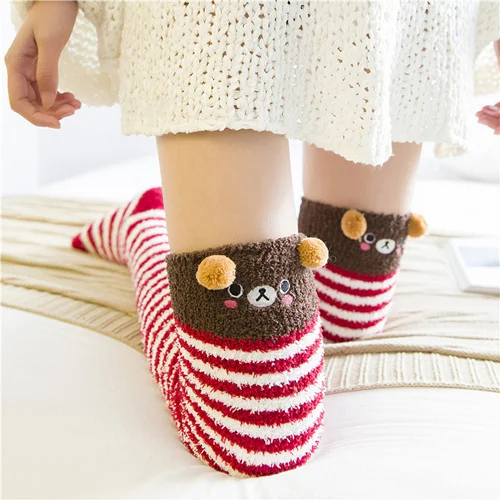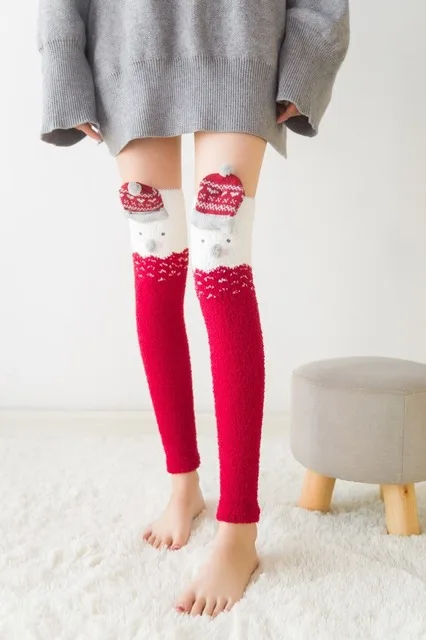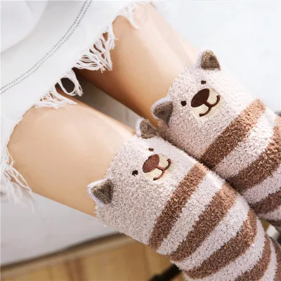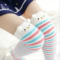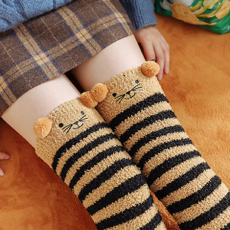 Japansk Mori Girl Djurmodellering Knä Randig Söt Härlig Kawaii Mysig Lång Lår Hög Sos Kompression Vinter Varm