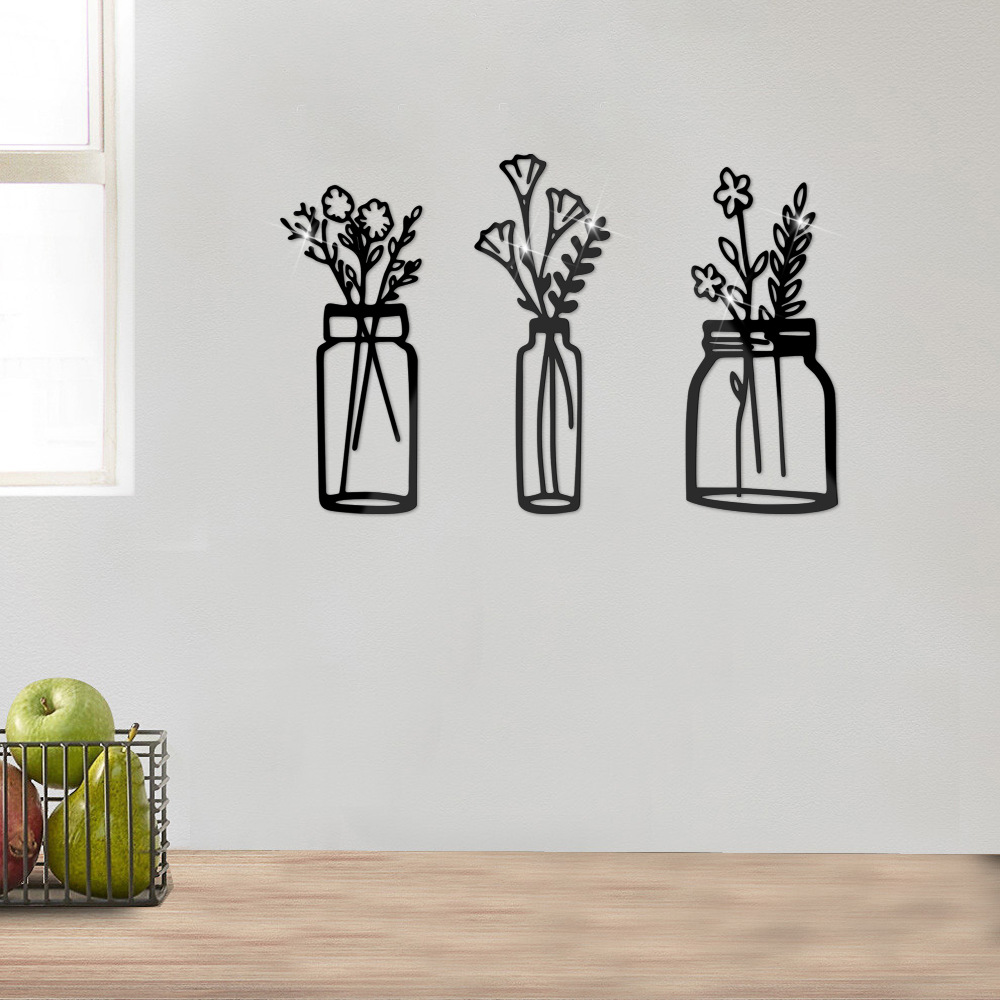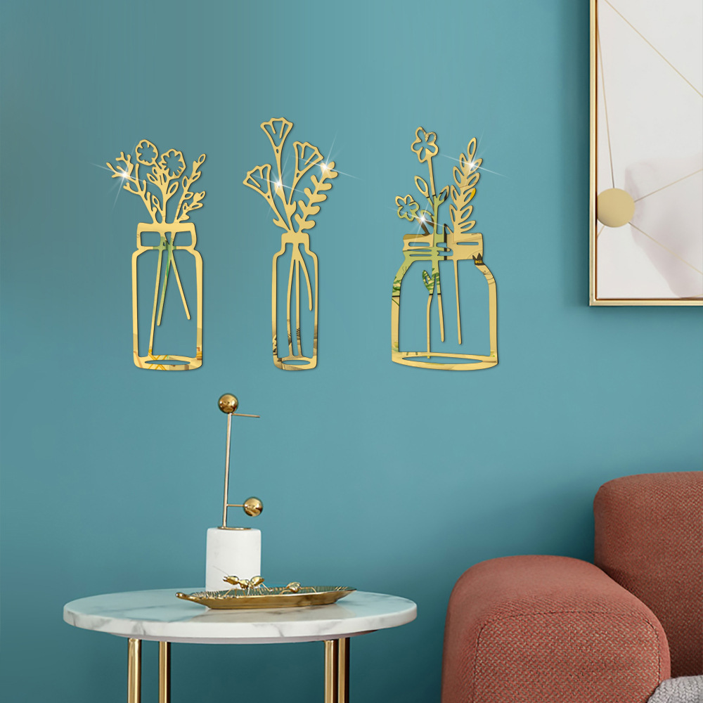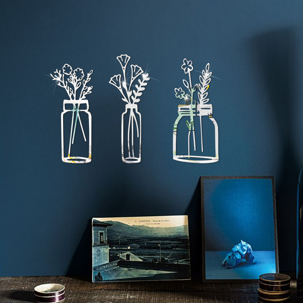 JM10123D tredimensionell ihålig vas akryl spegelyta klistermärke för heminredning självhäftande spegelvägg