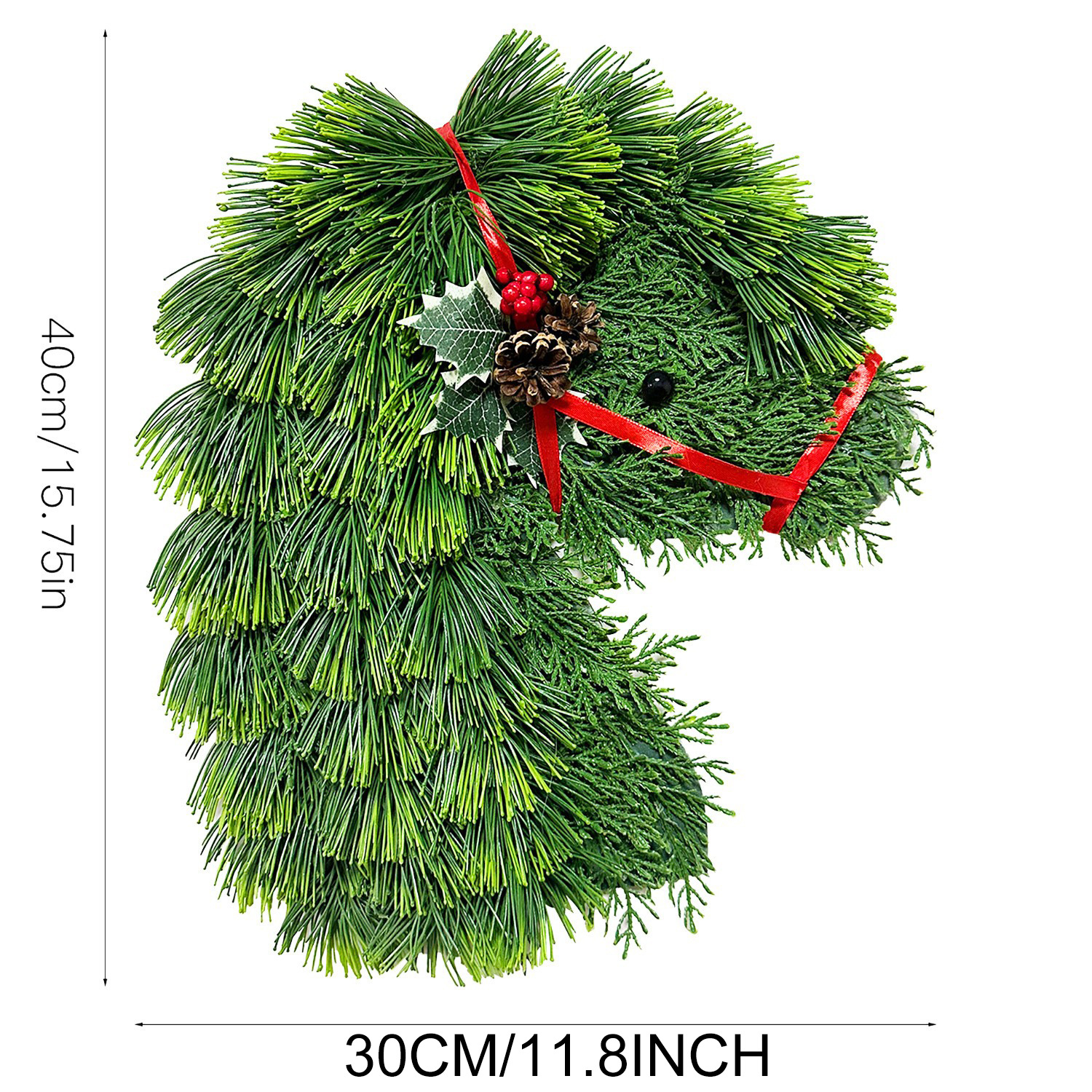 Christmas Theme Decor:This wreath is a perfect addition to your Christmas decorations, adding a festive touch to your home or office. Horsehead Design:The unique horsehead design makes this wreath stand out, adding a charming and distinctive touch to your decor. Versatile Use:Ideal for front door decoration, wall decoration, or as a centerpiece on the table. It can be used both inside and outside the house. High-Quality Material:Made from high-quality pine needles, this wreath is durable and lasts for a long time, maintaining its freshness and color. Bulk Wholesale:Available for bulk wholesale, this wreath is an ideal choice for retailers, event organizers, or large families who want to decorate for Christmas. Easy to Install:This wreath is easy to install, requiring no special tools or skills. Simply hang it on the wall or place it on a table.