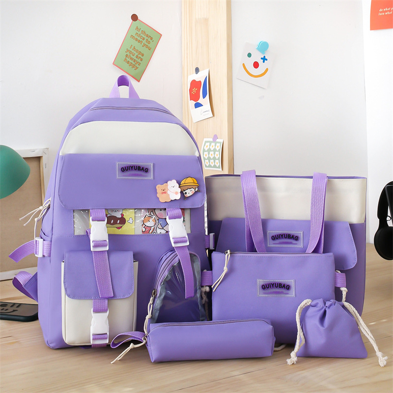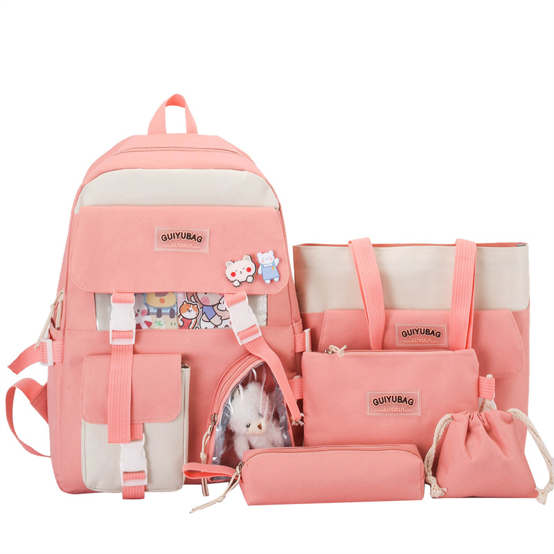 Kids Backpacks Primary School Student Backpack Cute Children's Backpack Campus Large Capacity Backpack Set With Badge Card