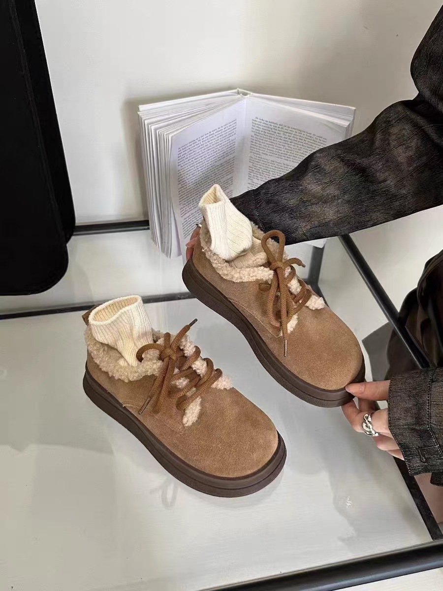 Klassiska snörskor herrstövlar Australien Designer snökängor Ankelskor Ull Läder Varma pälsstövlar Fluffy Mules Vinter Herrskor