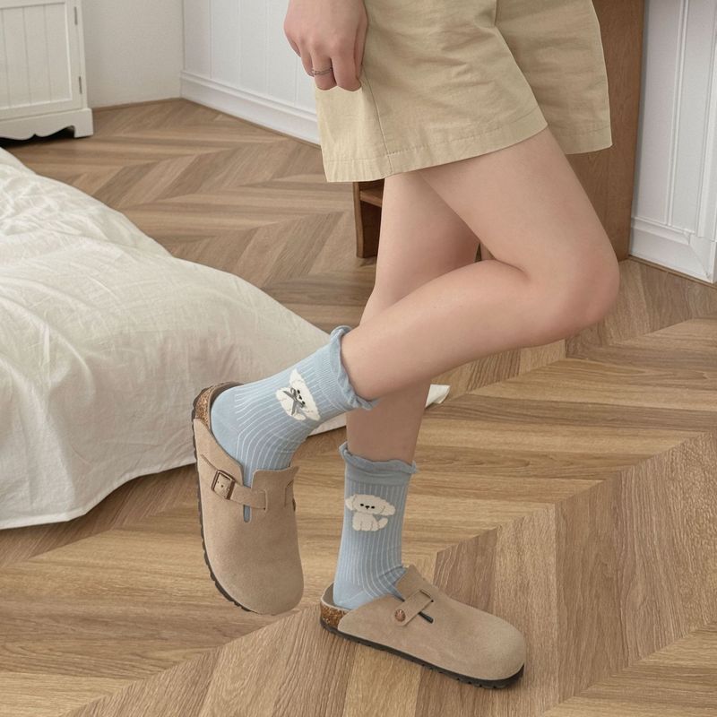 Korean and Japanese Style Lace Trim Puppy Mid-Calf Socks for Women Spring and Summer Season with Bowknot Pile Socks College Style Long Socks for Women