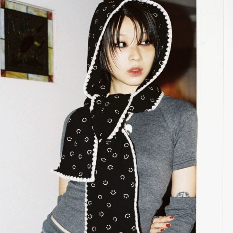 Korean Version Of The Smiley Face Printing Cute Lace Hundred Hoodie, Suitable For Girls In The Fall And Winter Season, Knitted Warm Scarf Inside The