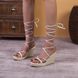 Kvinnors sommarplattform plattform höga klackar öppen tå damsandaler halmvävd hamprep nedre korsrem