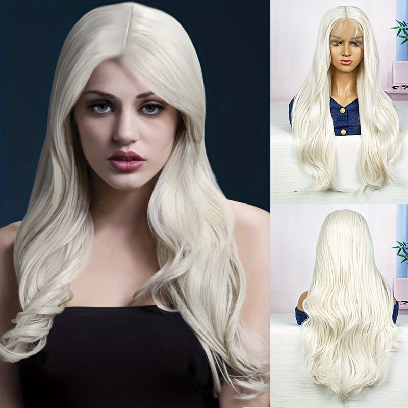 Lång vit peruk för kvinnor 13*4*1 spetsperuk Naturlig kropp Vågig syntetisk peruk Mittdel Värmebeständigt hår Naturligt hårfäste Cosplay Dagliga festperuker