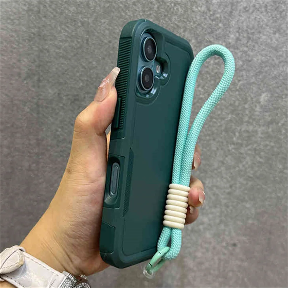 Luxury Solid Color Lanyard Soft Phone Case For iPhone 16 15 14 13 12 11 XS Pro Max Plus XR Camera Protection Shockproof Cover