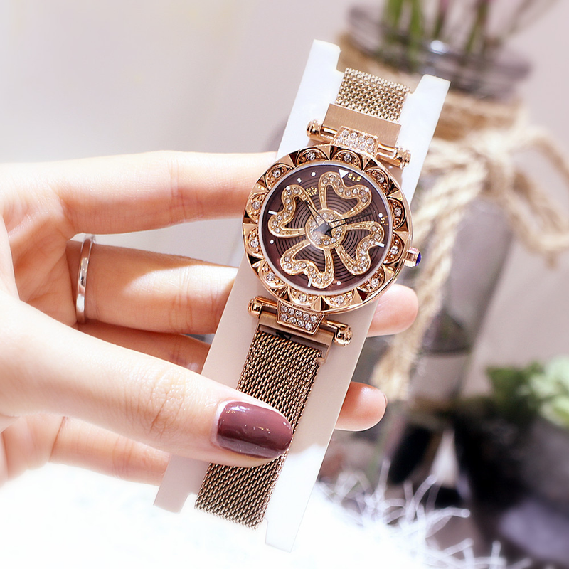 Moderiktiga och trendiga damklockor är i full gång. Magnetiskt nät med diamantutsmyckningar. Vattentäta damklockor.