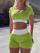 Fashionable bright color sexy crop top short vest shorts yoga suit set elastic waist can be worn outside sleepwear for women
