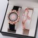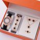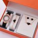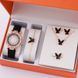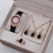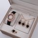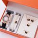 Modern och mångsidig lyxbox, snyggt stort strassbälte, presentask för damer i fyra delar, presentset med kvartsur