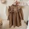 Mother & Kids Forest retro blomma broderi flickklänning 2024 höststil stativ krage lotusblad spets barns prinsessklänning långärmad