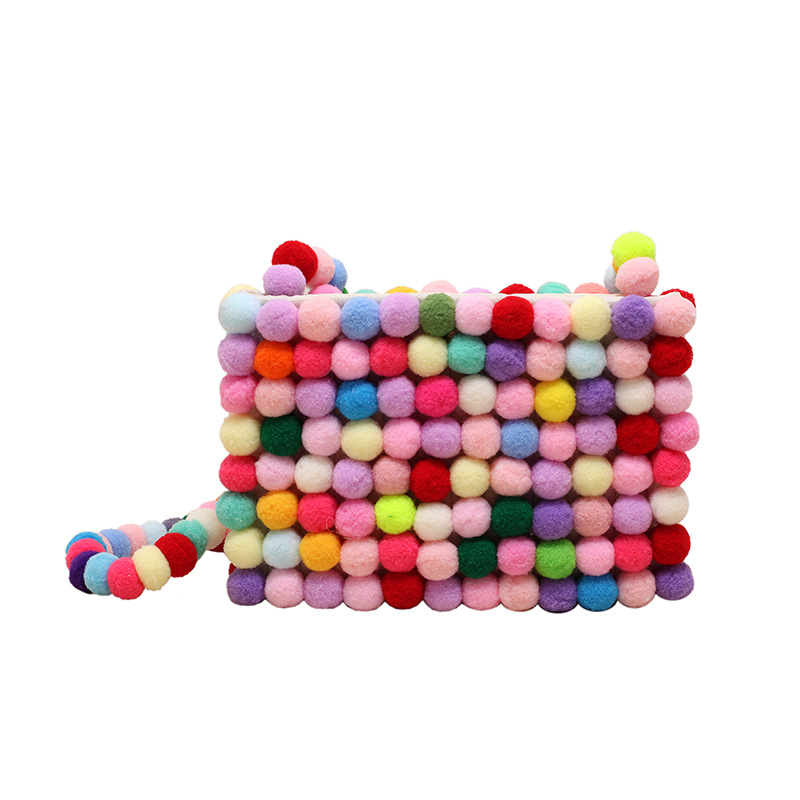 Nepal Colored Ball Cross Shoulder Bag Women's Fashion Rainbow Ball Plush Bag Versatile Small Square Bag