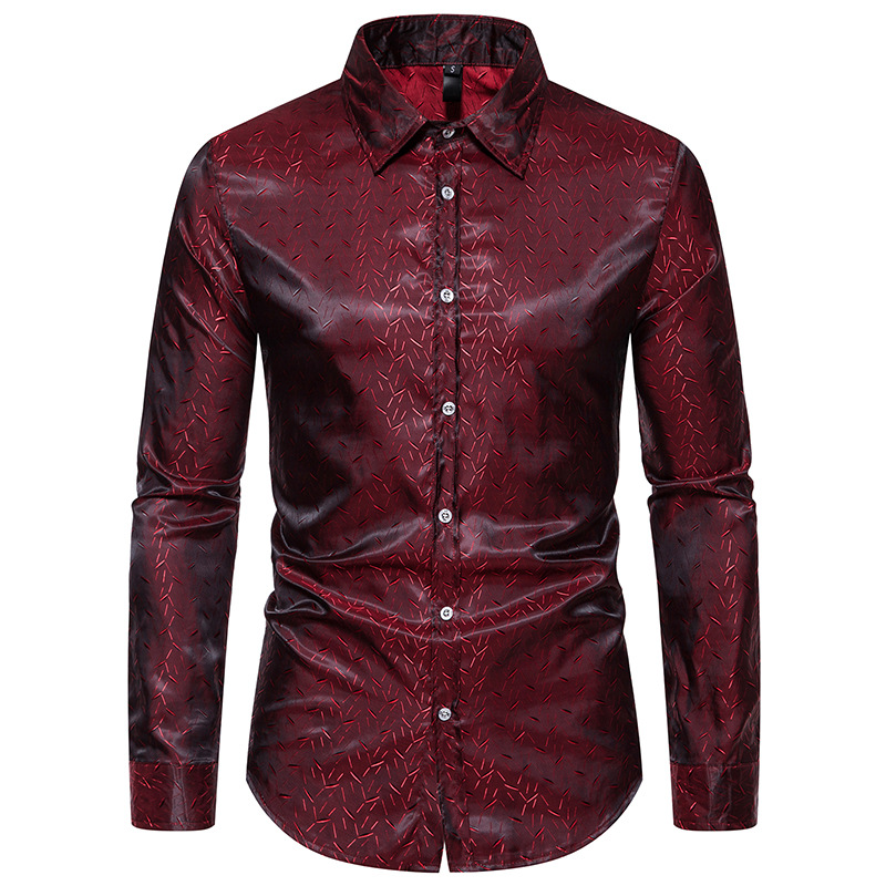 New 2024 men's jacquard casual long sleeved shirt, fashionable, youthful, and trendy for men