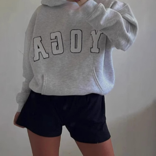 New Casual Gray Embroidered YOGA Printed Loose Hooded Women's Sweatshirt