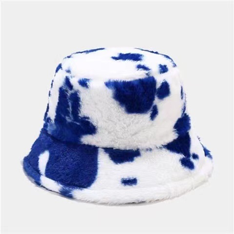 Plush New Cow Pattern Fisherman Hat Autumn and Winter Plush Thickened Pot Hat Japanese and Korean Fashion Versatile Cute Hat Girl