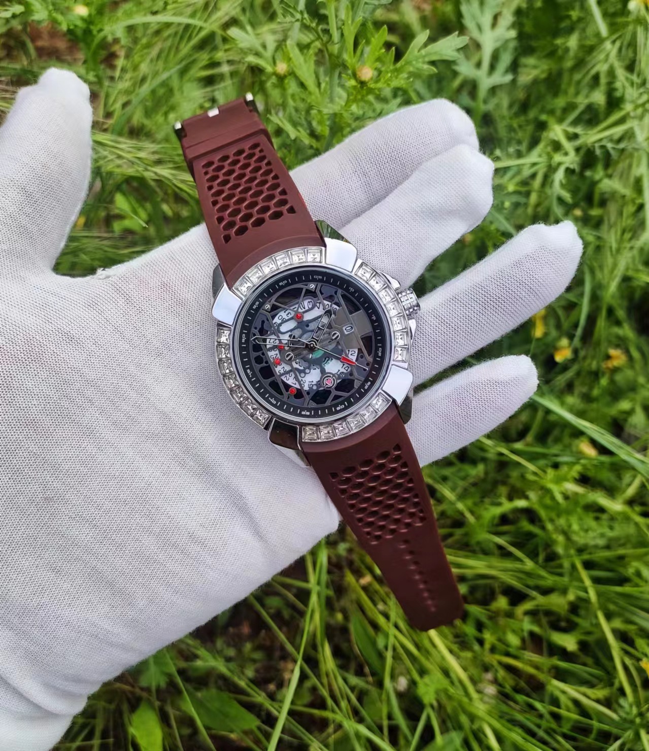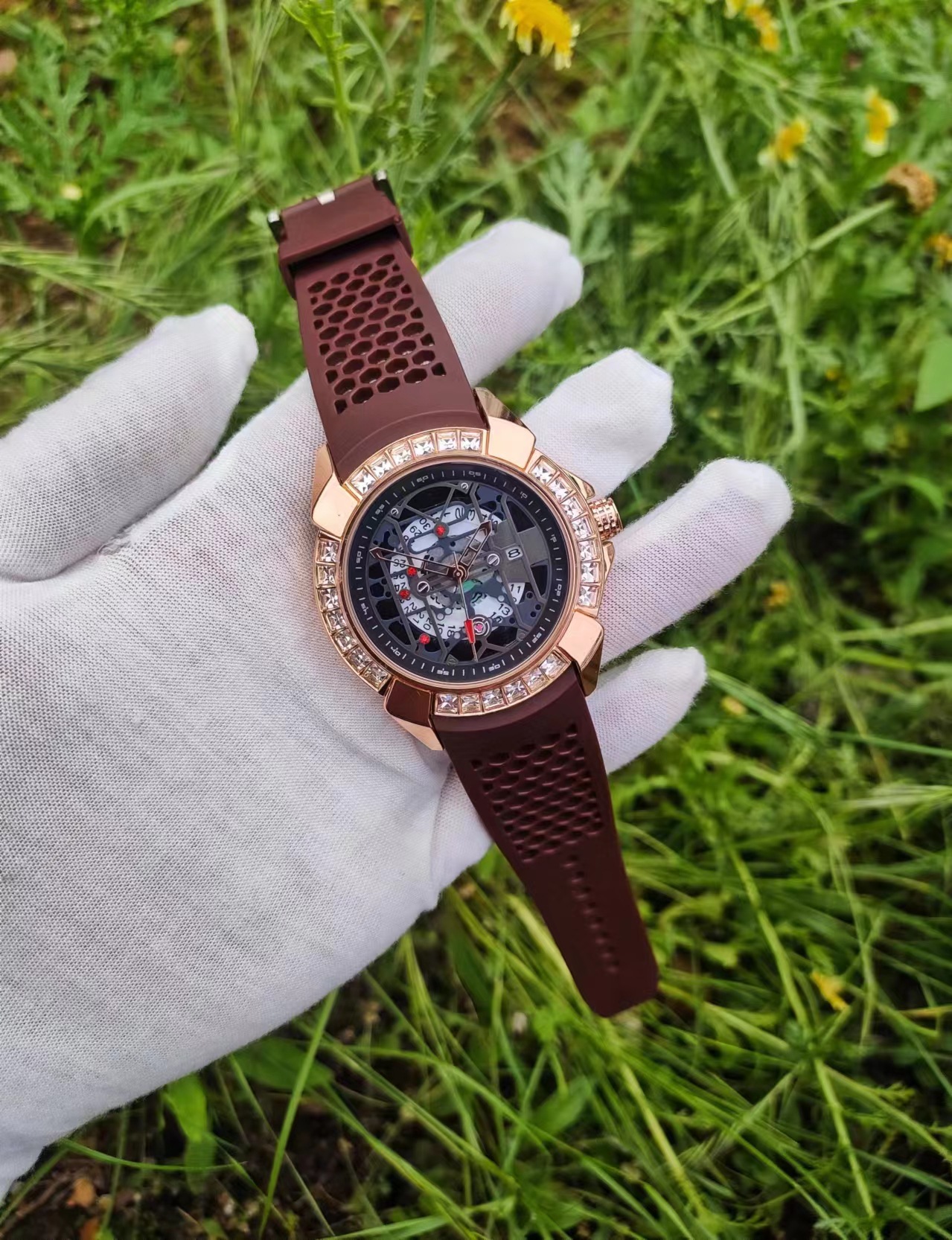 Nytt tjeckiskt leopardfärgat kvartsur med samma trend, urholkat kvartsur med enkel kalender, moderiktigt, dithering, populärt armbandsur