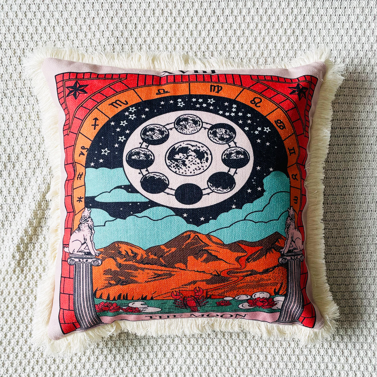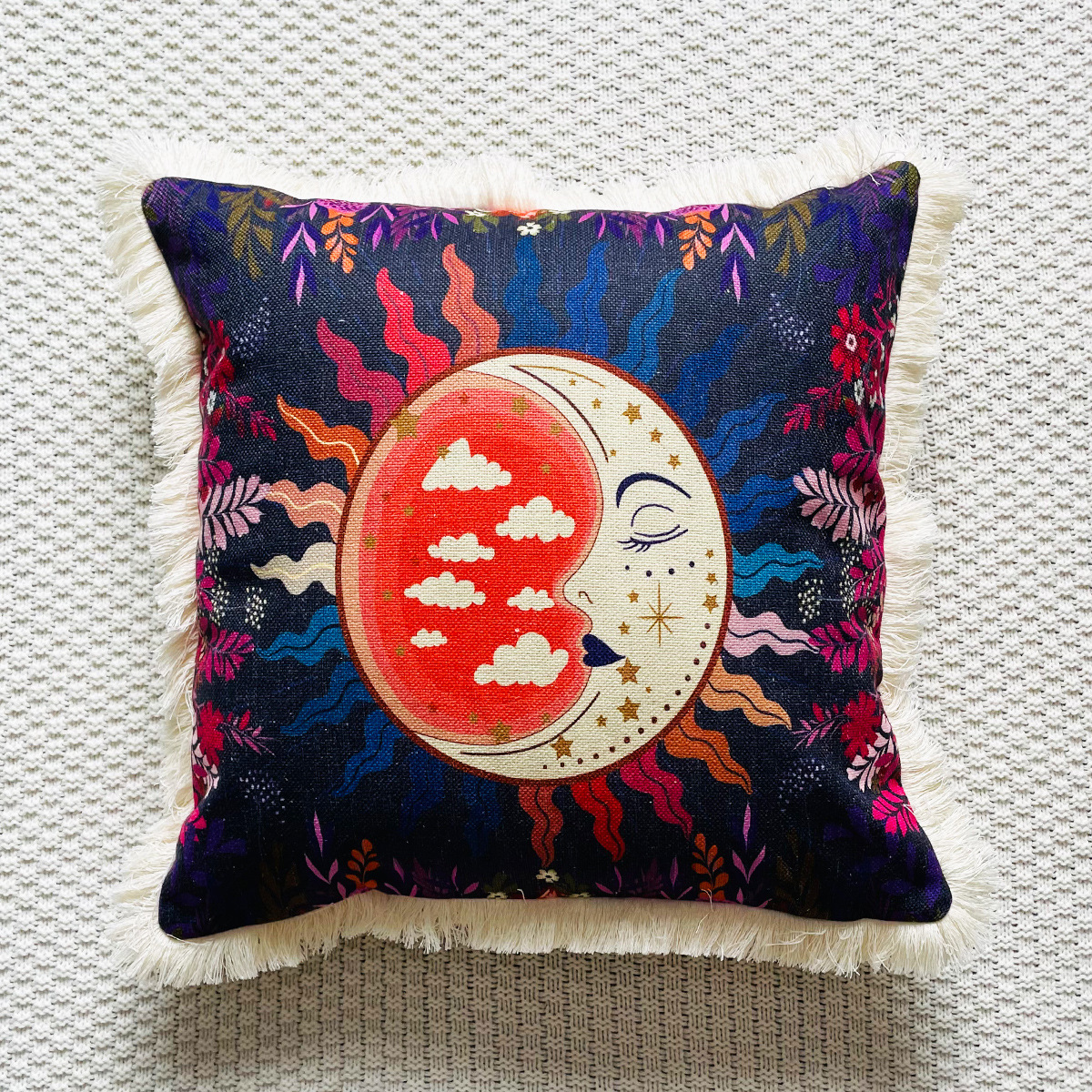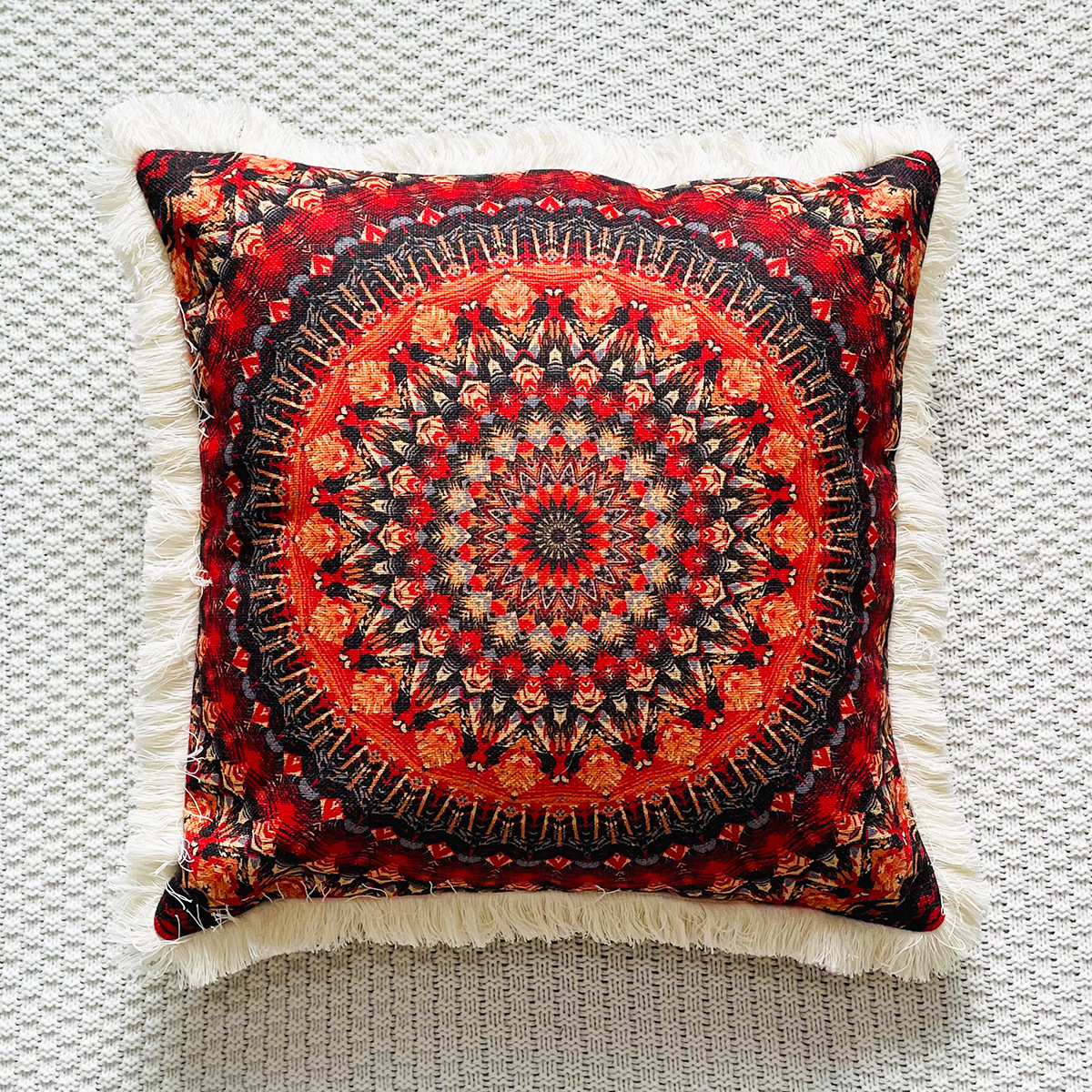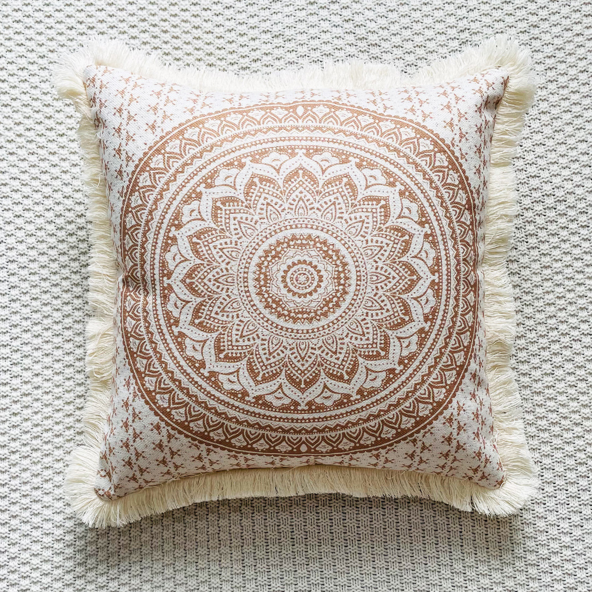New European and American style round tassel edge decoration cotton and linen printed pillow case home decoration sofa cushion cover