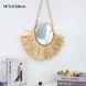 Nordic Handwoven Raffia Wall Mirror - Boho Rattan Round Decorative Mirror For Living Room & Bedroom