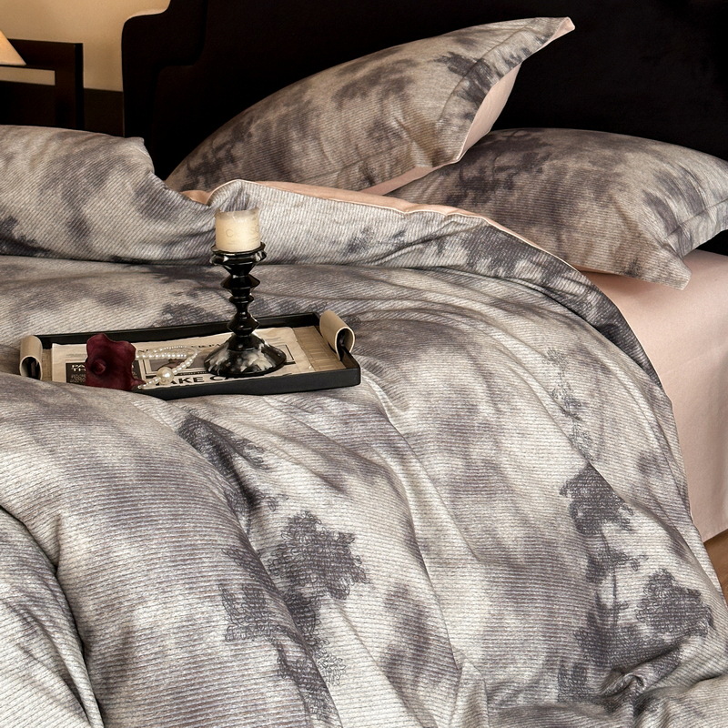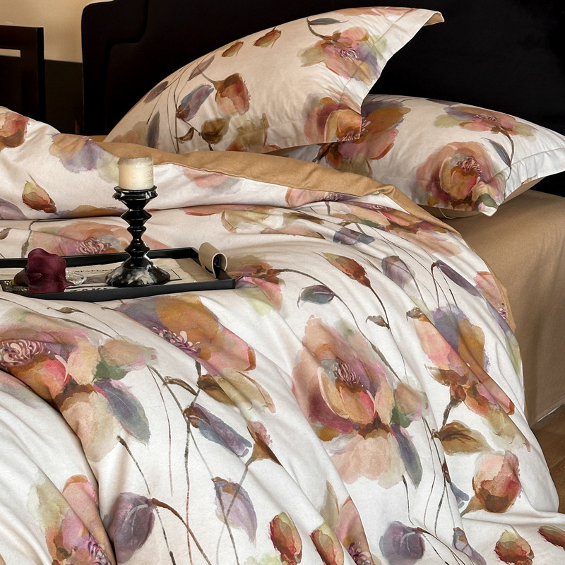 60-count long-staple cotton brushed four-piece set, pure cotton duvet cover and bed sheet, all-cotton, new autumn and winter French-style digital print bedding