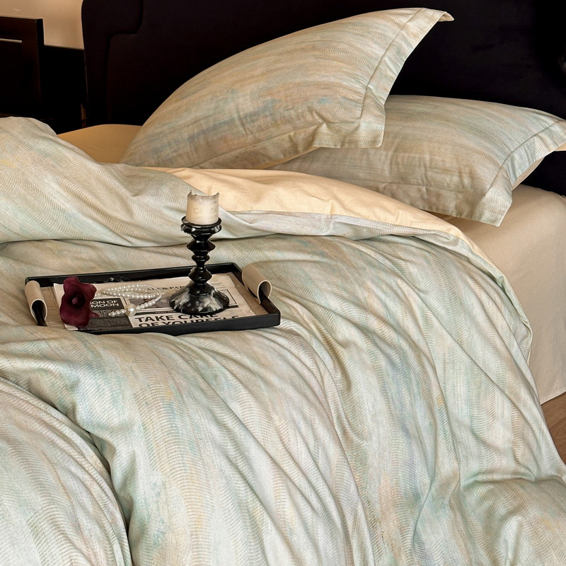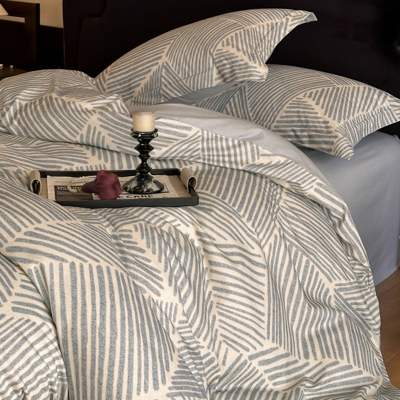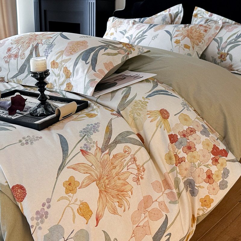 Nordic French Vintage Boho 60-count Long-staple Brushed Four-piece Set, Pure Cotton Duvet Cover Bed Sheet, All-cotton, New Autumn And Winter