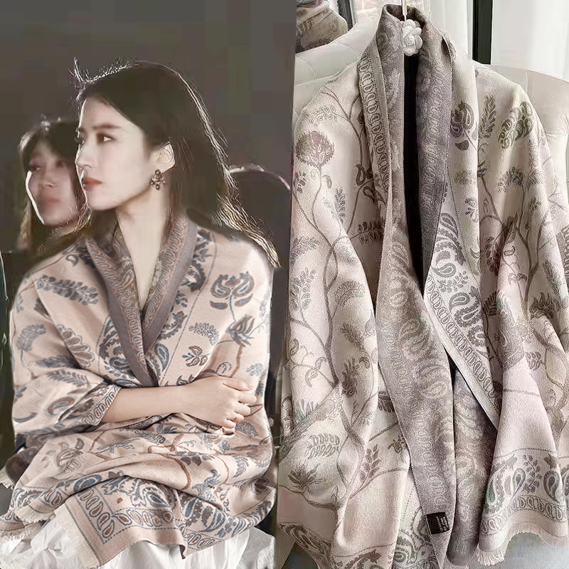 Ny höst- och vintermodesjal för kontor, tupplursfilt, kashmirhalsduk med tryck, tofs, varm halsduk med stjärnmotiv