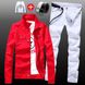 Ny jeansjacka för män Jeans Byxor Slim Fit 2 st Set Pojkar Casual Bokstäver Tryckta kappa Byxor med hänge Candy Color