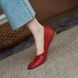 Platta skor i äkta läder för kvinnor, supermjuka fårskor, vår- och höststil, grunda rundhättade balettskor med rosett, röda rake rake-skor